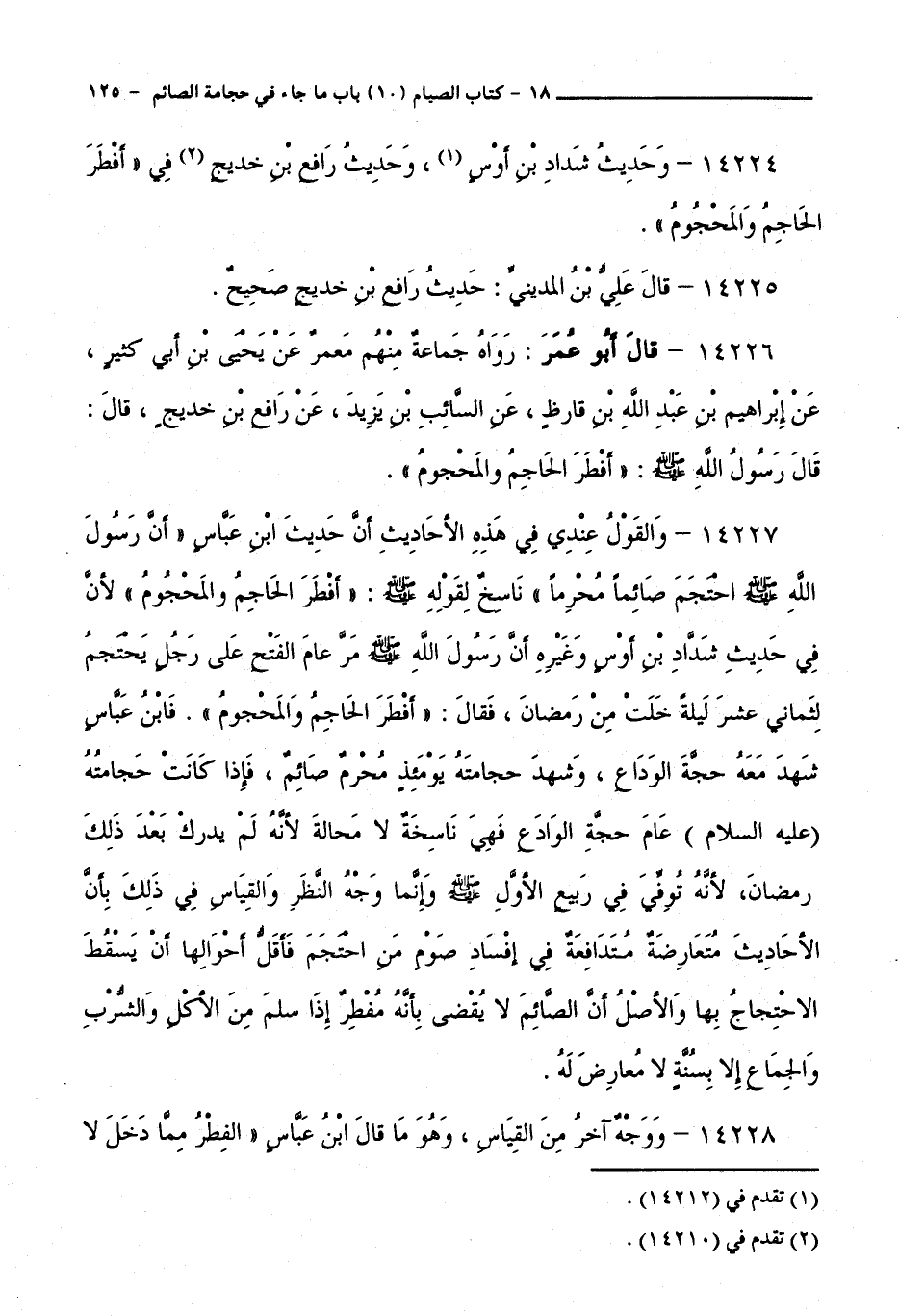14225 - قَالَ: عَلِيُّ بْنُ الْمَدِينِيِّ: حَدِيثُ رَافِعِ بْنِ خَدِيجٍ صَحِيحٌ.