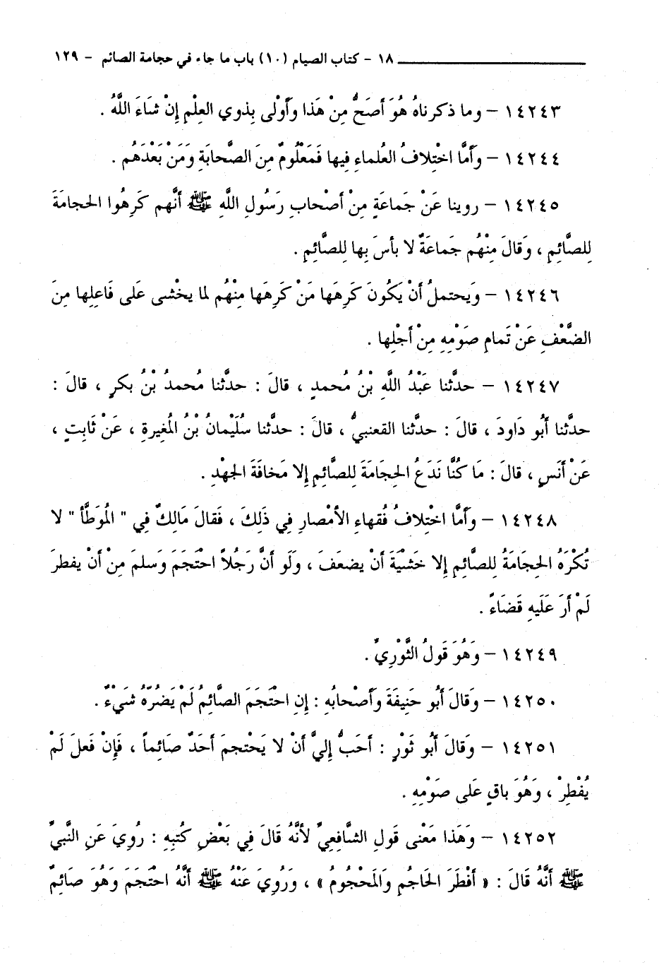 14250 - وَقَالَ أَبُو حَنِيفَةَ وَأَصْحَابُهُ: إِنِ احْتَجَمَ الصَّائِمُ لَمْ يَضُرُّهُ شَيْءٌ.