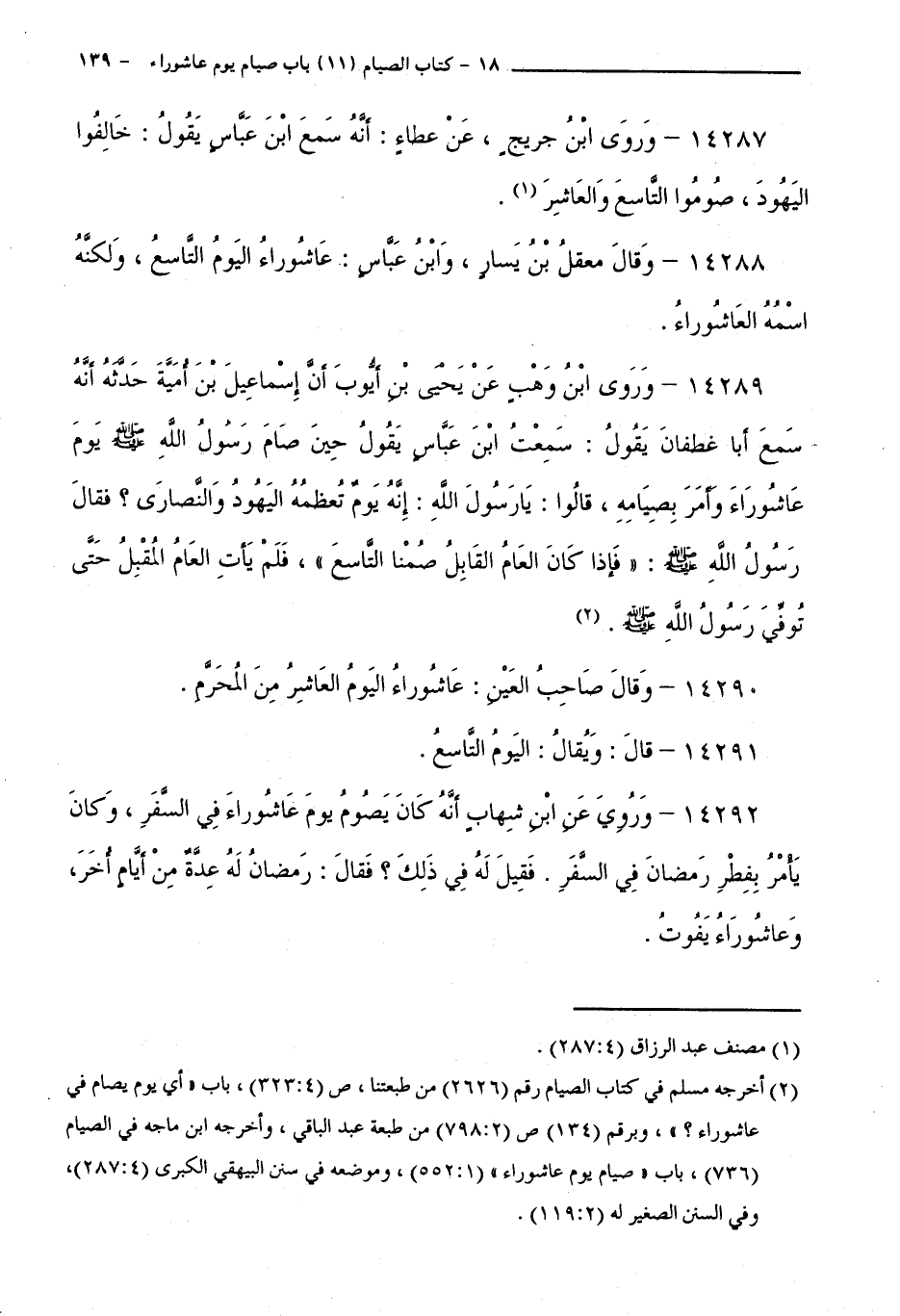 14287 - وَرَوَى ابْنُ جُرَيْجٍ، عَنْ عَطَاءٍ، أَنَّهُ سَمِعَ ابْنَ عَبَّاسٍ يَقُولُ: خَالِفُوا الْيَهُودَ، صُومُوا التَّاسِعَ وَالْعَاشِرَ.