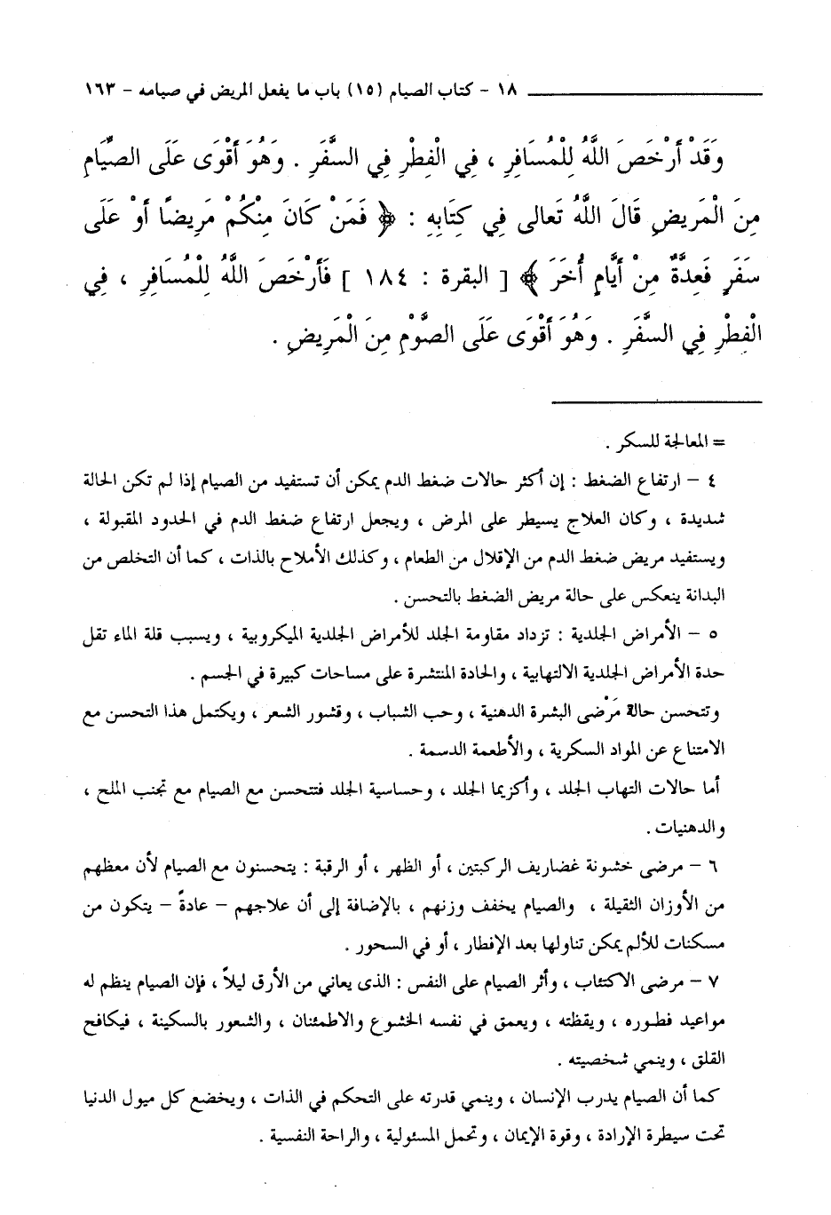 وَقَدْ أَرْخَصَ اللَّهُ لِلْمُسَافِرِ، فِي الْفِطْرِ فِي السَّفَرِ. وَهُوَ أَقْوَى عَلَى الصِّيَامِ مِنَ الْمَرِيضِ ; قَالَ اللَّهُ تَعَالَى فِي كِتَابِهِ:فَمَنْ كَانَ مِنْكُمْ مَرِيضًا أَوْ عَلَى سَفَرٍ فَعِدَّةٌ مِنْ أَيَّامٍ أُخَرَ [ الْبَقَرَةِ: 184 ] فَأَرْخَصَ اللَّهُ لِلْمُسَافِرِ فِي الْفِطْرِ فِي السَّفَرِ. وَهُوَ أَقْوَى عَلَى الصَّوْمِ مِنَ الْمَرِيضِ.