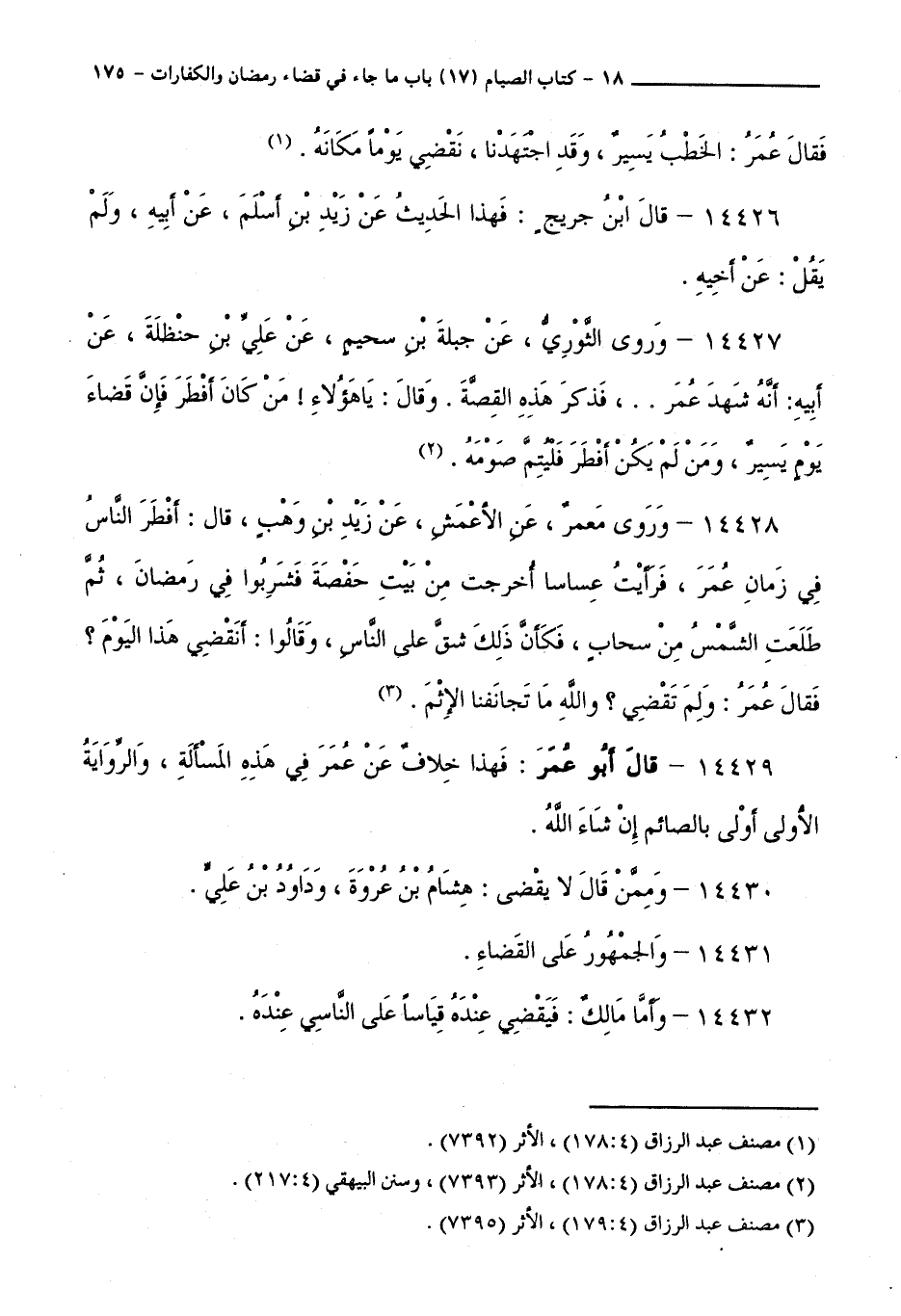 14431 - وَالْجُمْهُورُ عَلَى الْقَضَاءِ.