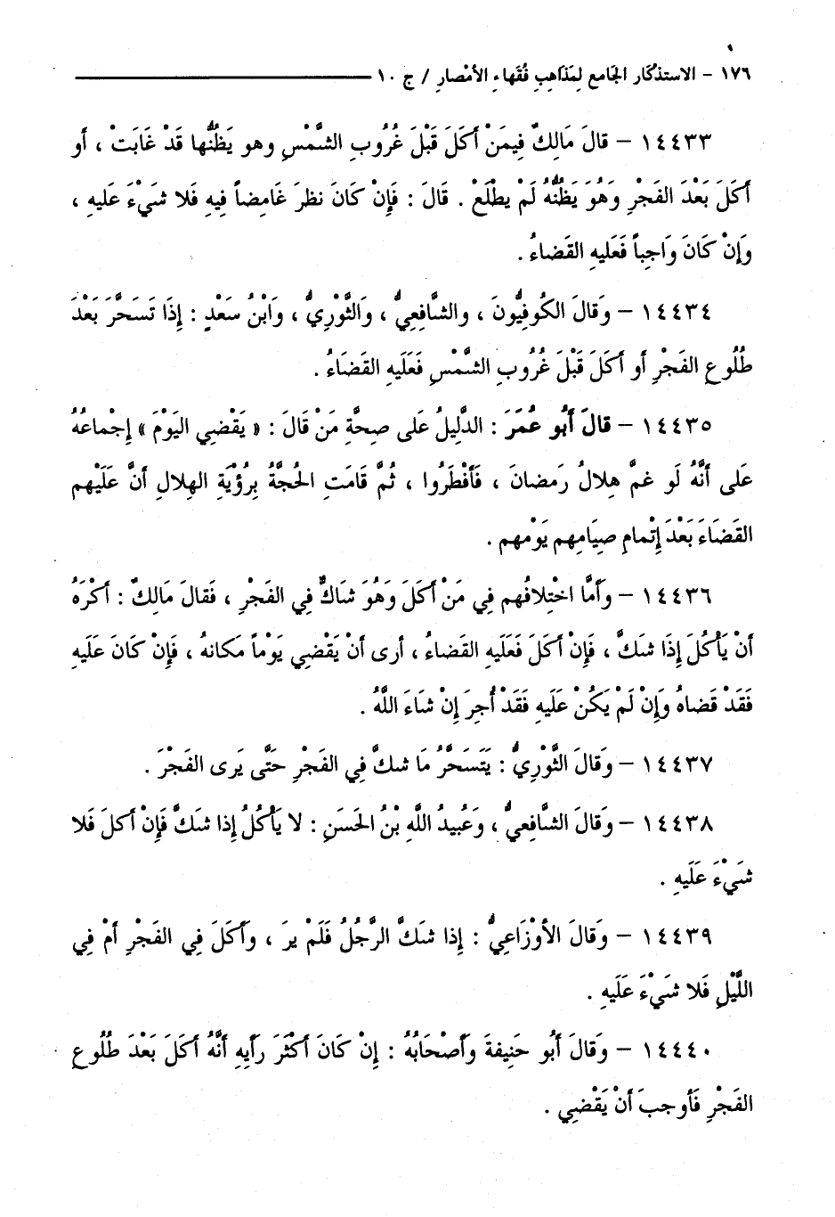 كتاب الاستذكار الجامع لمذاهب فقهاء الأمصار - ت: قلعجي (اسم الجزء: 10)