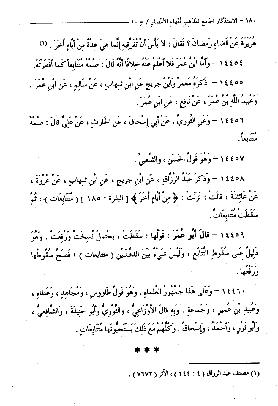 كتاب الاستذكار الجامع لمذاهب فقهاء الأمصار - ت: قلعجي (اسم الجزء: 10)