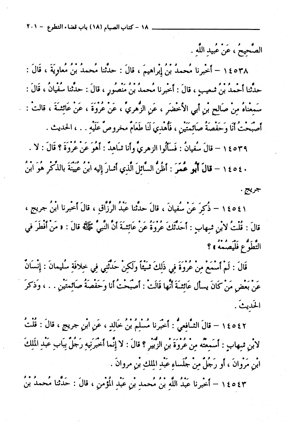 14539 - قَالَ: سُفْيَانُ: فَسَأَلُوا الزُّهْرِيَّ وَأَنَا شَاهِدٌ: أَهُوَ عَنْ عُرْوَةَ ؟ قَالَ: لَا.