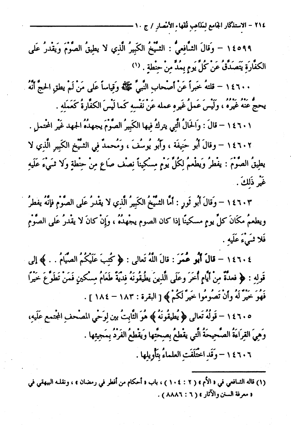 14604 - قَالَ أَبُو عُمَرَ: قَالَ اللَّهُ تَعَالَى:كُتِبَ عَلَيْكُمُ الصِّيَامُ إِلَى قَوْلِهِ:فَعِدَّةٌ مِنْ أَيَّامٍ أُخَرَ وَعَلَى الَّذِينَ يُطِيقُونَهُ فِدْيَةٌ طَعَامُ مِسْكِينٍ فَمَنْ تَطَوَّعَ خَيْرًا فَهُوَ خَيْرٌ لَهُ وَأَنْ تَصُومُوا خَيْرٌ لَكُمْ [ الْبَقَرَةِ: 183 - 184 ].