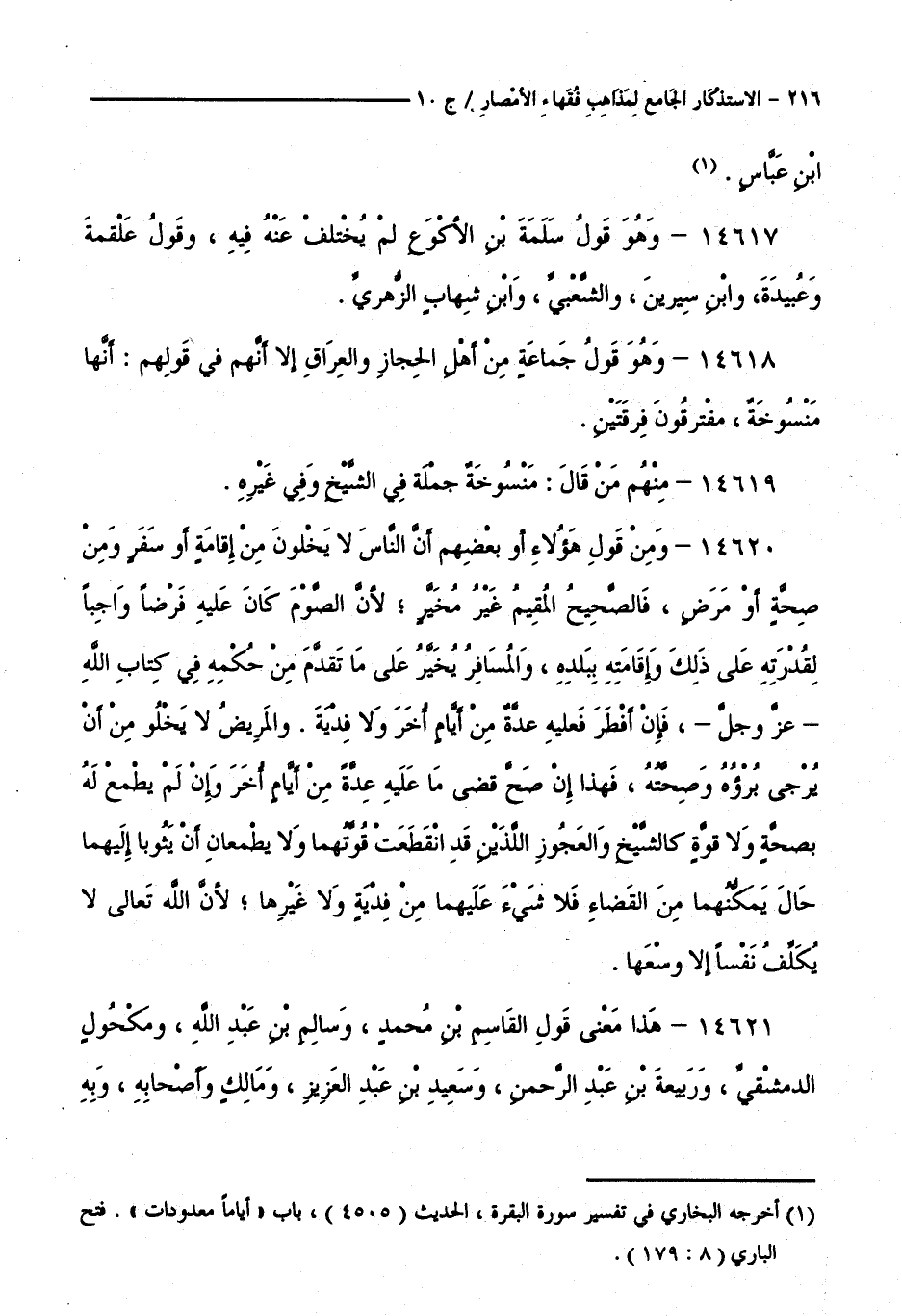 14621 - هَذَا مَعْنَى قَوْلِ الْقَاسِمِ بْنِ مُحَمَّدٍ، وَسَالِمِ بْنِ عَبْدِ اللَّهِ، وَمَكْحُولٍ الدِّمَشْقِيُّ، وَرَبِيعَةَ بْنِ عَبْدِ الرَّحْمَنِ، وَسَعِيدِ بْنِ عَبْدِ الْعَزِيزِ، وَمَالِكٍ وَأَصْحَابِهِ، وَبِهِ