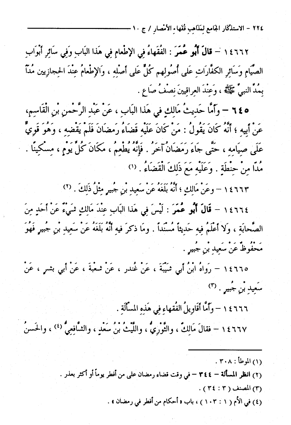 كتاب الاستذكار الجامع لمذاهب فقهاء الأمصار - ت: قلعجي (اسم الجزء: 10)