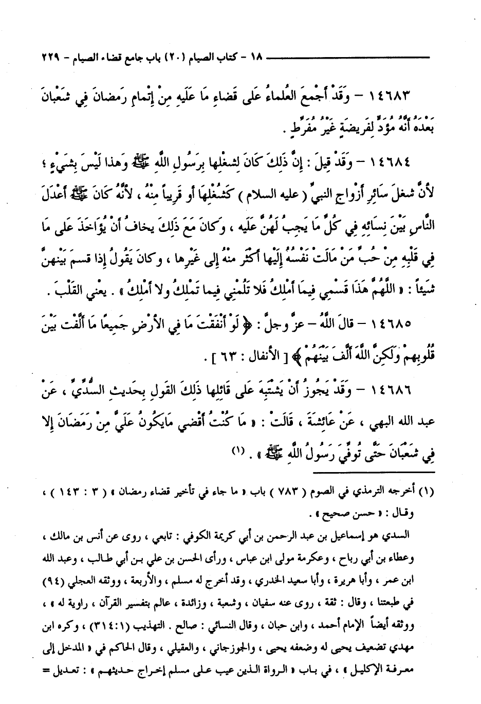 14686 - وَقَدْ يَجُوزُ أَنْ يَشْتَبِهَ عَلَى قَائِلِهَا ذَلِكَ الْقَوْلُ بِحَدِيثِ السُّدِّيِّ، عَنْ عَبْدِ اللَّهِ الْبَهِيِّ، عَنْ عَائِشَةَ قَالَتْ: " مَا كُنْتُ أَقْضِي مَا يَكُونُ عَلَيَّ مِنْ رَمَضَانَ إِلَّا فِي شَعْبَانَ حَتَّى تُوُفِّيَ رَسُولُ اللَّهِ.