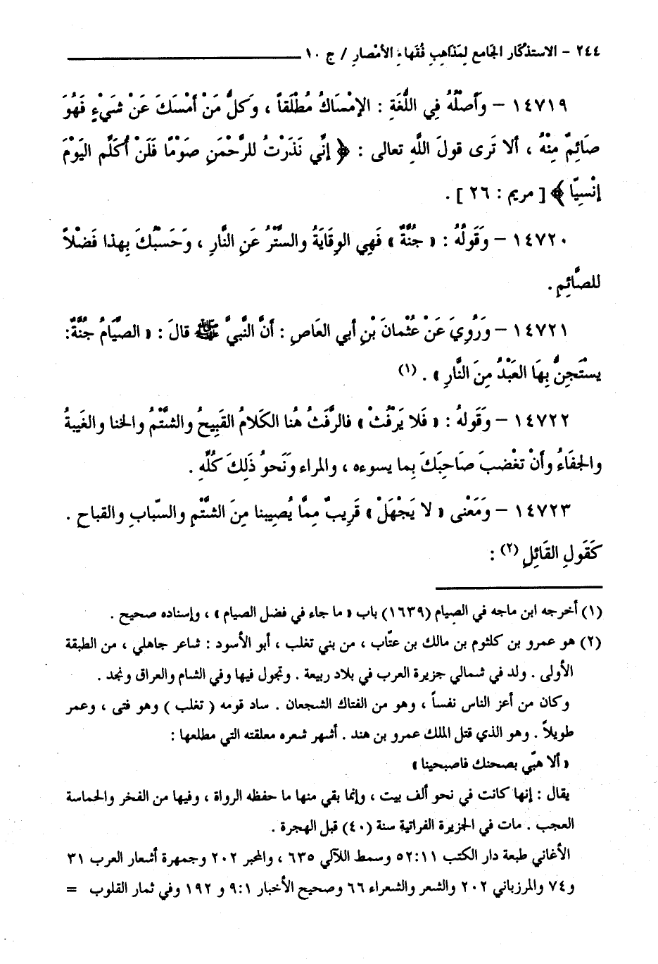 كتاب الاستذكار الجامع لمذاهب فقهاء الأمصار - ت: قلعجي (اسم الجزء: 10)