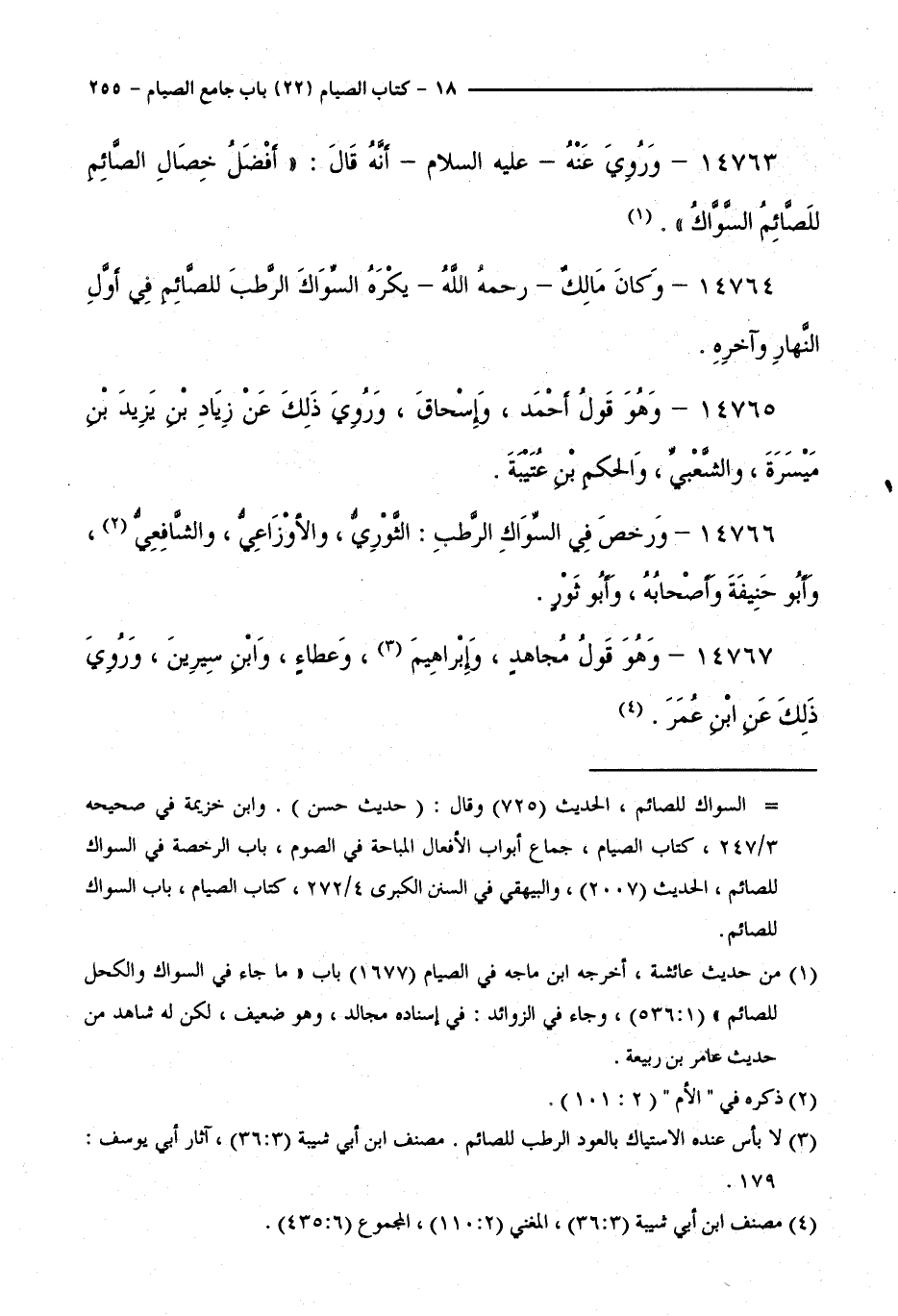 14766 - وَرَخَّصَ فِي السِّوَاكِ الرَّطْبِ: الثَّوْرِيُّ، وَالْأَوْزَاعِيُّ، وَالشَّافِعِيُّ، وَأَبُو حَنِيفَةَ وَأَصْحَابُهُ، وَأَبُو ثَوْرٍ.