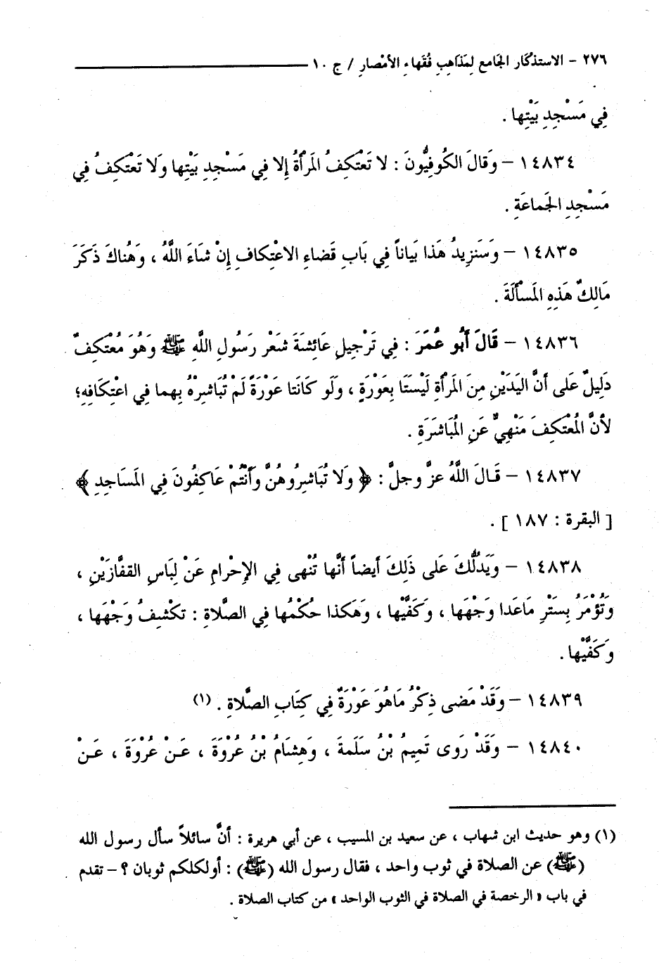 كتاب الاستذكار الجامع لمذاهب فقهاء الأمصار - ت: قلعجي (اسم الجزء: 10)