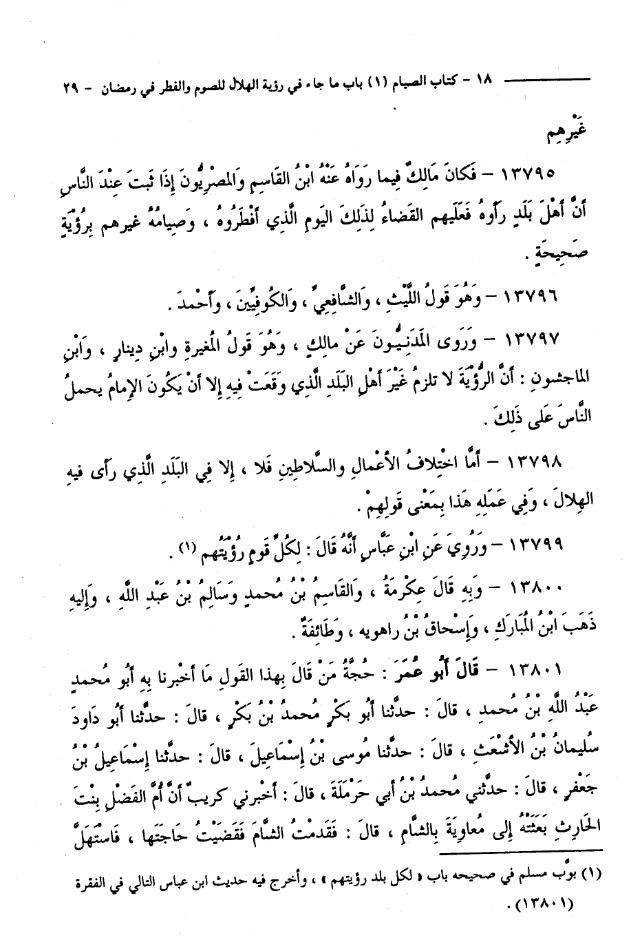 13798 - أَمَّا اخْتِلَافُ الْأَعْمَالِ وَالسَّلَاطِينِ فَلَا، إِلَّا فِي الْبَلَدِ الَّذِي رَأَى فِيهِ الْهِلَالَ وَفِي عَمَلِهِ هَذَا بِمَعْنَى قَوْلِهِمْ.