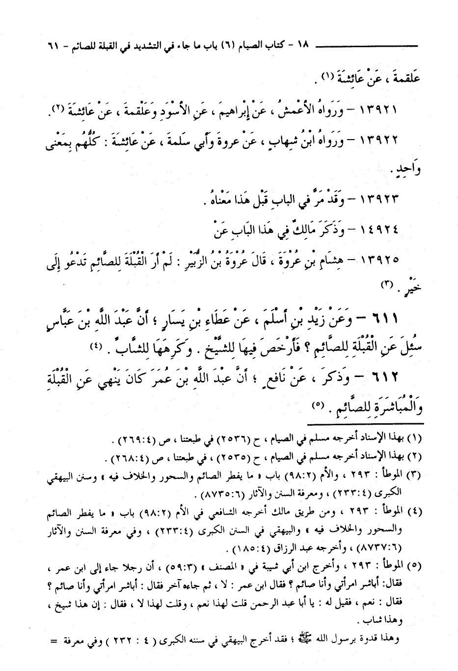 13924 - وَذَكَرَ مَالِكٌ فِي هَذَا الْبَابِ عَنْ 13925 - هِشَامِ بْنِ عُرْوَةَ، قَالَ عُرْوَةُ بْنُ الزُّبَيْرِ: لَمْ أَرَ الْقُبْلَةَ لِلصَّائِمِ تَدْعُو إِلَى خَيْرٍ.