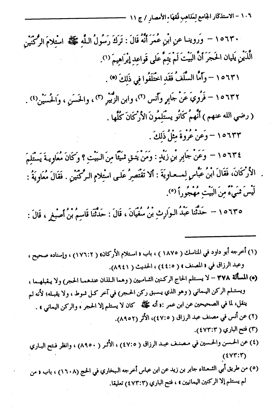 15632 - فَرُوِيَ عَنْ جَابِرٍ وَأَنَسٍ، وَابْنِ الزُّبَيْرِ، وَالْحَسَنِ، وَالْحُسَيْنِ ( رَضِيَ اللَّهُ عَنْهُمْ ) أَنَّهُمُ كَانُو يَسْتَلِمُونَ الْأَرْكَانَ كُلَّهَا.