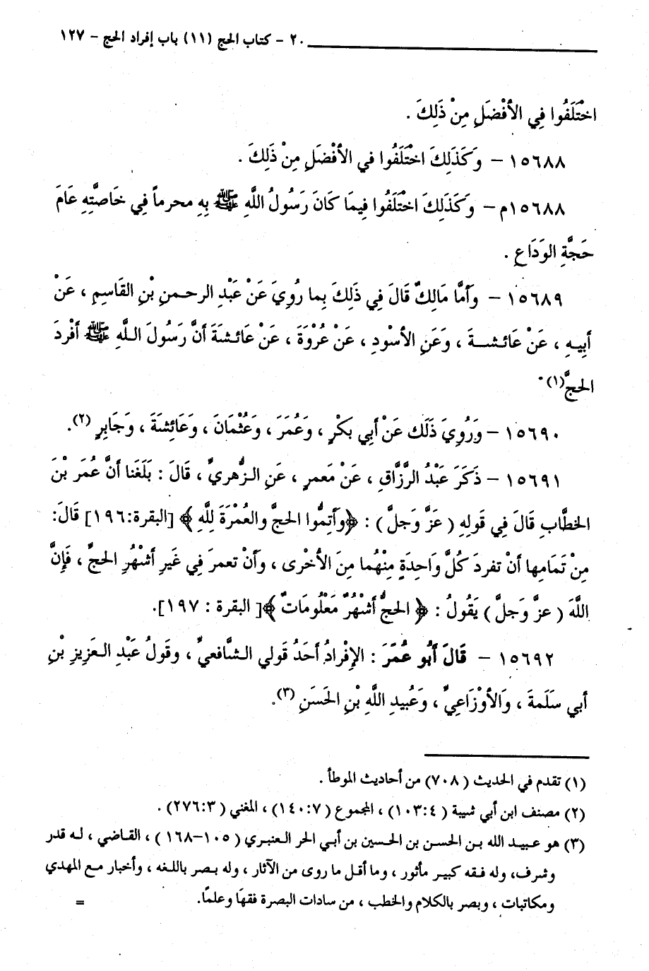 15692 - قَالَ أَبُو عُمَرَ: الْإِفْرَادُ أَحَدُ قَوْلَيِ الشَّافِعِيِّ، وَقَوْلُ عَبْدِ الْعَزِيزِ بْنِ أَبِي سَلَمَةَ، وَالْأَوْزَاعِيِّ، وَعُبَيْدِ اللَّهِ بْنِ الْحَسَنِ.