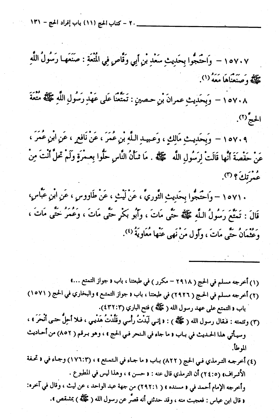 15707 - وَاحْتَجُّوا لِحَدِيثِ سَعْدِ بْنِ أَبِي وَقَّاصٍ فِي الْمُتْعَةِ: صَنَعَهَا رَسُولُ اللَّهِ - صَلَّى اللَّهُ عَلَيْهِ وَسَلَّمَ - وَصَنَعْنَاهَا مَعَهُ.