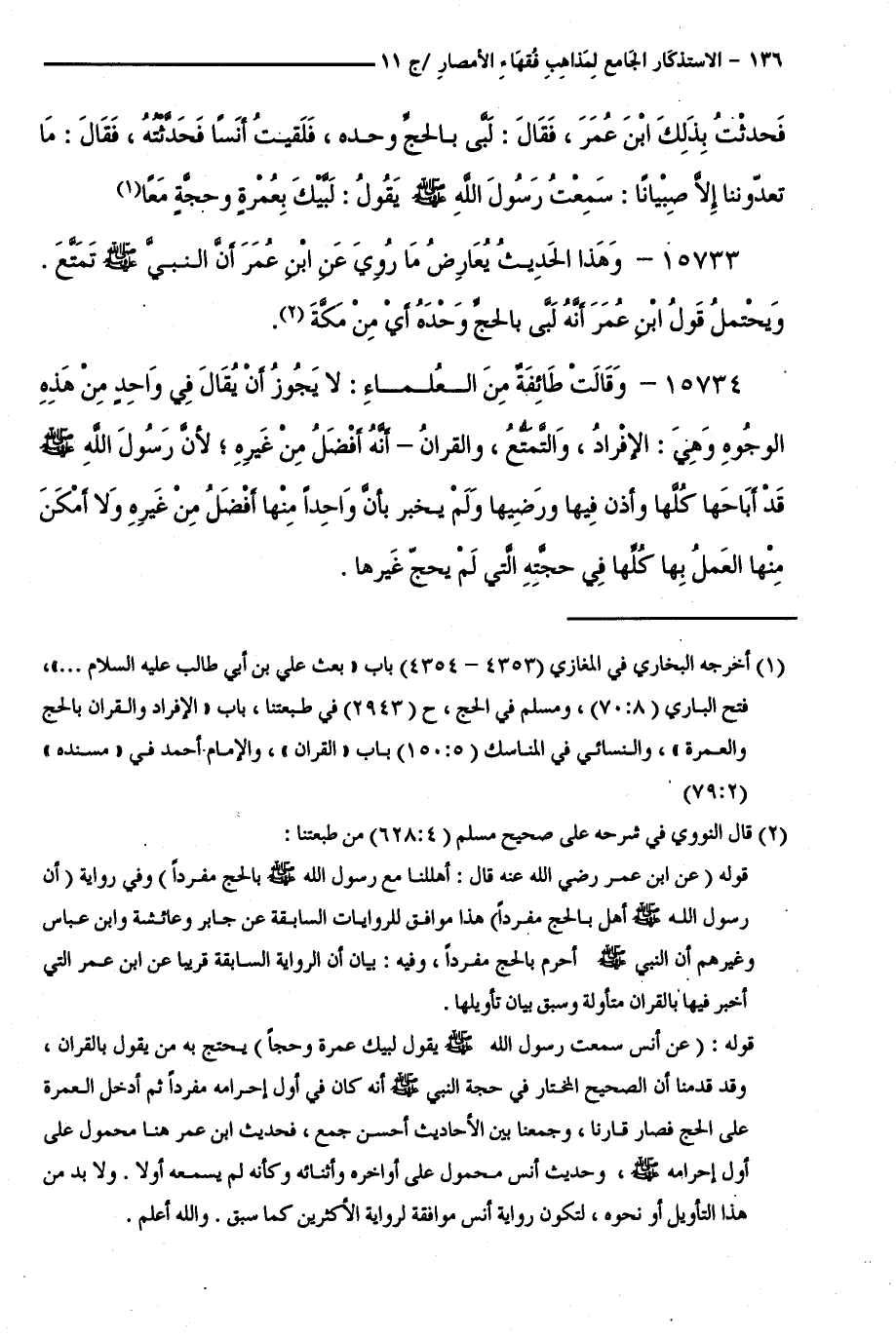 كتاب الاستذكار الجامع لمذاهب فقهاء الأمصار - ت: قلعجي (اسم الجزء: 11)