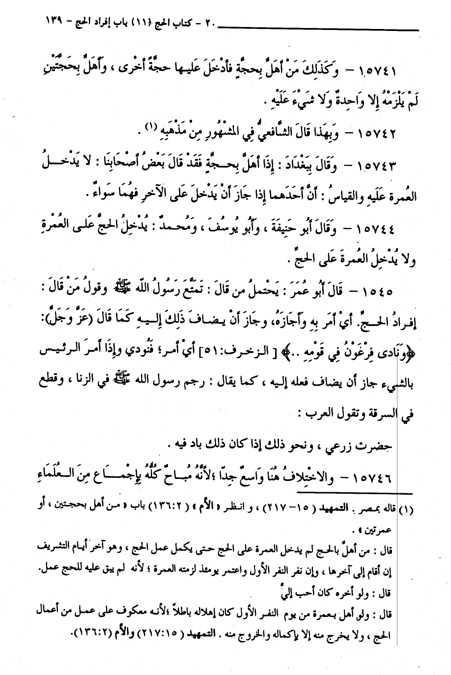 1545 - قَالَ أَبُو عُمَرَ: يَحْتَمِلُ مَنْ قَالَ: تَمَتَّعَ رَسُولُ اللَّهِ - صَلَّى اللَّهُ عَلَيْهِ وَسَلَّمَ - وَقَوْلُ مَنْ قَالَ: إِفْرَادُ الْحَجِّ. أَيْ أَمَرَ بِهِ وَأَجَازَهُ، وَجَازَ أَنْ يُضَافَ ذَلِكَ إِلَيْهِ كَمَا قَالَ ( عَزَّ وَجَلَّ ): ( وَنَادَى فِرْعَوْنُ فِي قَوْمِهِ.. ) [ الزُّخْرُفِ: 51 ] أَيْ أَمَرَ ; فَنُودِيَ وَإِذَا أَمَرَ الرَّئِيسُ بِالشَّيْءِ جَازَ أَنْ يُضَافَ فِعْلُهُ إِلَيْهِ، كَمَا يُقَالُ: رَجَمَ رَسُولُ اللَّهِ - صَلَّى اللَّهُ عَلَيْهِ وَسَلَّمَ - فِي الزِّنَا، وَقَطَعَ فِي السَّرِقَةِ وَتَقُولُ الْعَرَبُ: حَضَرْتُ زَرْعِي، وَنَحْوَ ذَلِكَ إِذَا كَانَ ذَلِكَ بَادٍ فِيهِ.