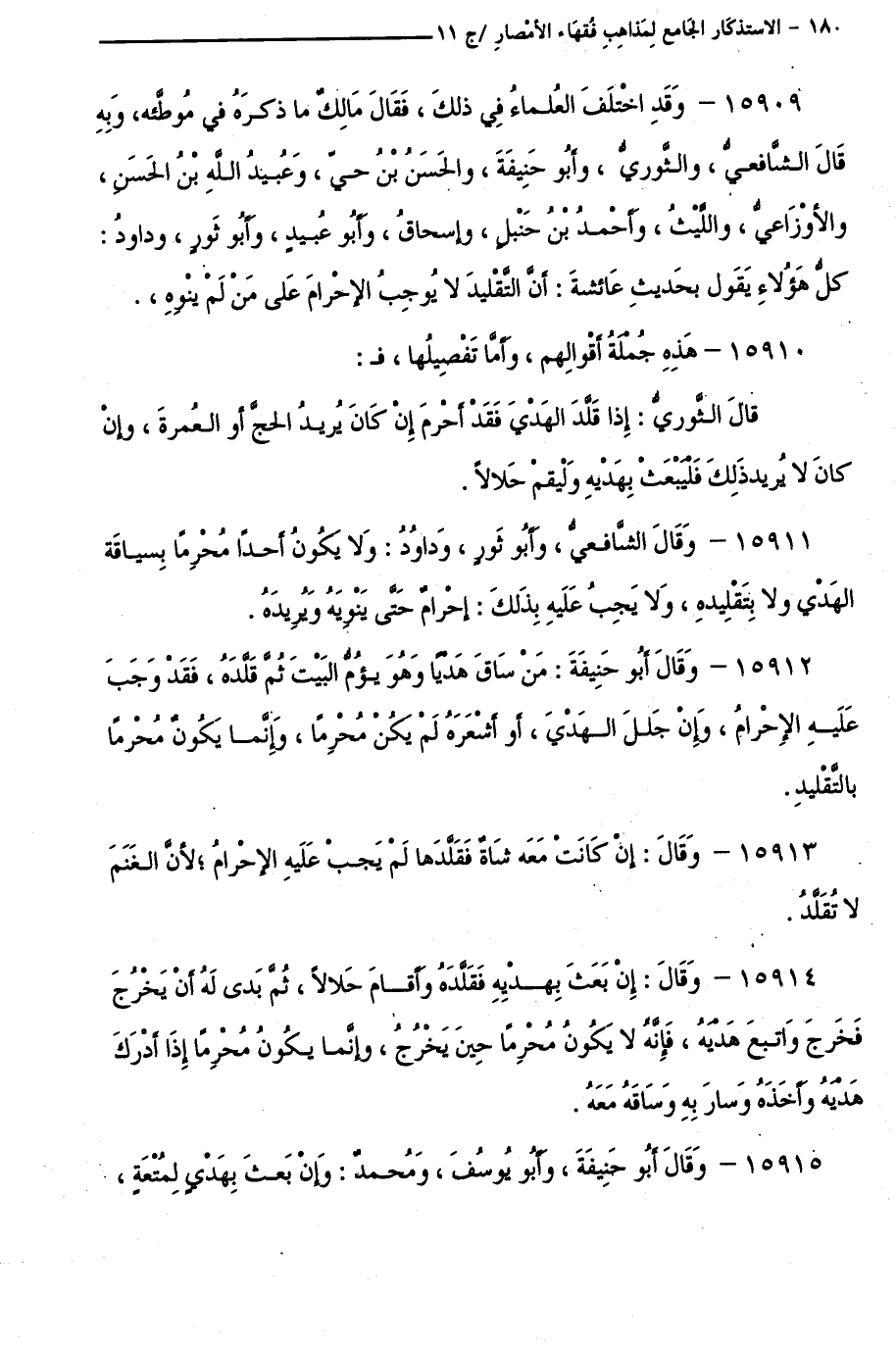 كتاب الاستذكار الجامع لمذاهب فقهاء الأمصار - ت: قلعجي (اسم الجزء: 11)