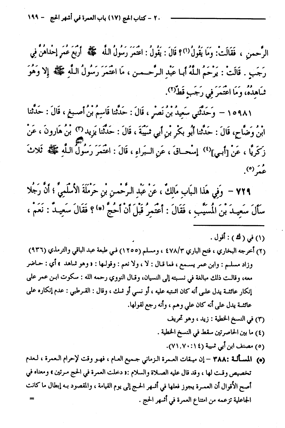 15981 - وَحَدَّثَنِي سَعِيدُ بْنُ نَصْرٍ، قَالَ: حَدَّثَنَا قَاسِمُ بْنُ أَصْبَغَ، قَالَ: حَدَّثَنَا ابْنُ وَضَّاحٍ، قَالَ: حَدَّثَنَا أَبُو بَكْرِ بْنُ أَبِي شَيْبَةَ، قَالَ: حَدَّثَنَا يَزِيدُ بْنُ هَارُونَ، عَنْ زَكَرِيَّا، عَنْ أَبِي إِسْحَاقَ، عَنِ الْبَرَاءِ، قَالَ: اعْتَمَرَ رَسُولُ اللَّهِ - صَلَّى اللَّهُ عَلَيْهِ وَسَلَّمَ - ثَلَاثَ عُمَرٍ.