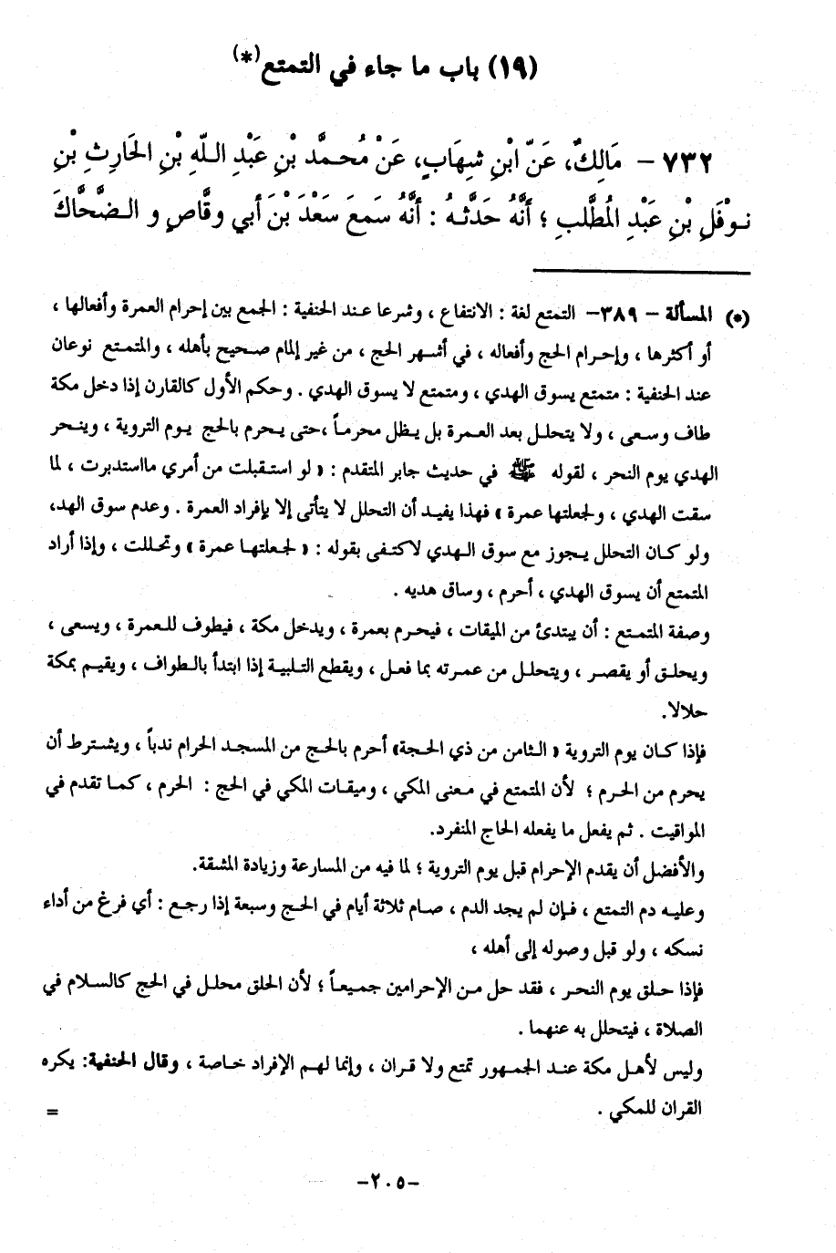 732 - مَالِكٌ، عَنِ ابْنِ شِهَابٍ، عَنْ مُحَمَّدِ بْنِ عَبْدِ اللَّهِ بْنِ الْحَارِثِ بْنِ نَوْفَلِ بْنِ عَبْدِ الْمُطَّلِبِ ; أَنَّهُ حَدَّثَهُ: أَنَّهُ سَمِعَ سَعْدَ بْنَ أَبِي وَقَاصٍّ وَالضَّحَّاكَ