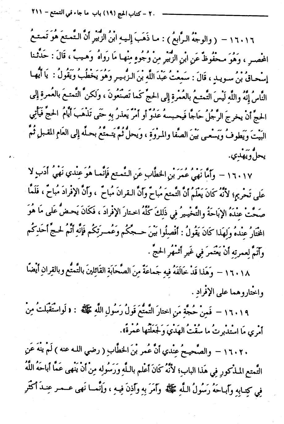 16018 - وَهَذَا قَدْ خَالَفَهُ فِيهِ جَمَاعَةٌ مِنَ الصَّحَابَةِ الْقَائِلِينَ بِالتَّمَتُّعِ وَبِالْقِرَانِ أَيْضًا وَاخْتَارُوهُمَا عَلَى الْإِفْرَادِ.