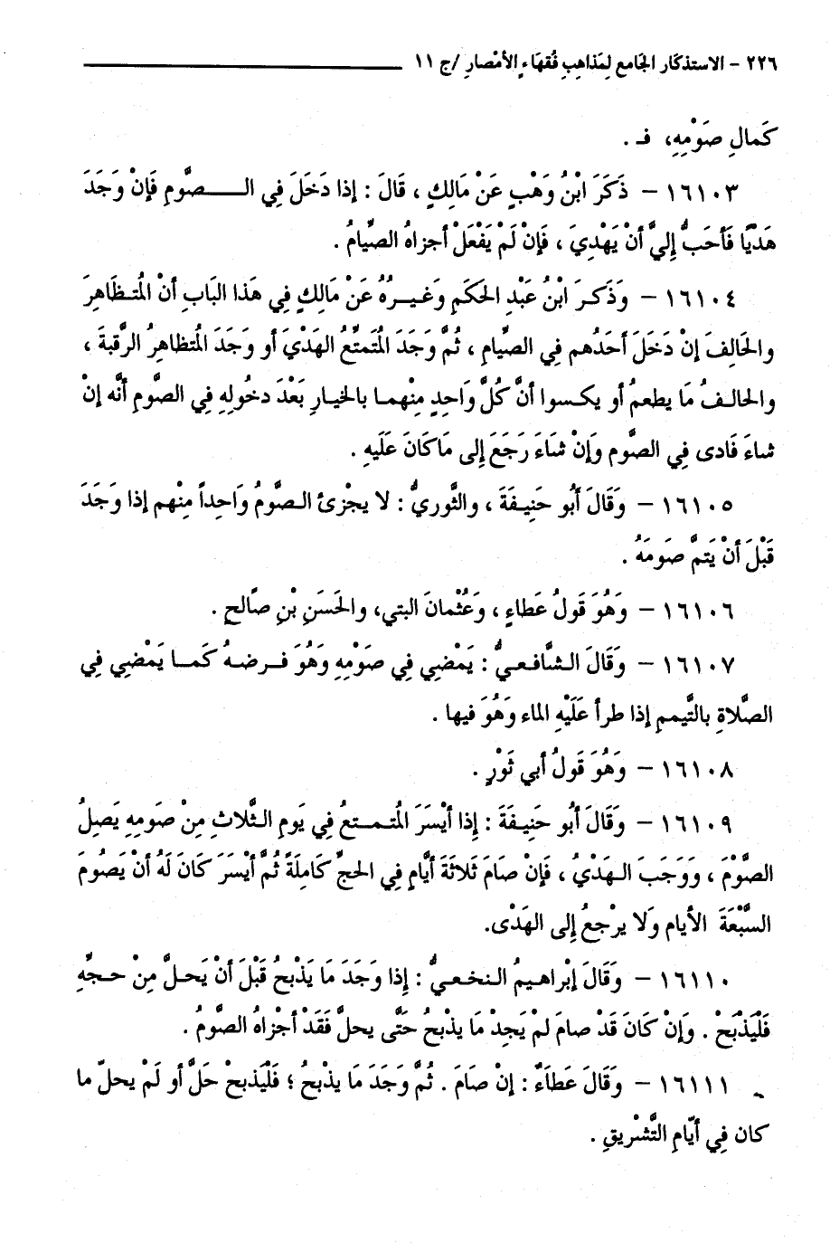 كتاب الاستذكار الجامع لمذاهب فقهاء الأمصار - ت: قلعجي (اسم الجزء: 11)