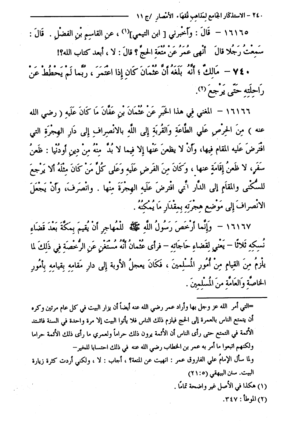 كتاب الاستذكار الجامع لمذاهب فقهاء الأمصار - ت: قلعجي (اسم الجزء: 11)