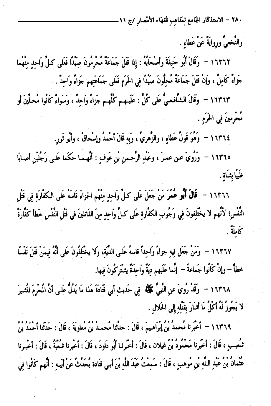 كتاب الاستذكار الجامع لمذاهب فقهاء الأمصار - ت: قلعجي (اسم الجزء: 11)