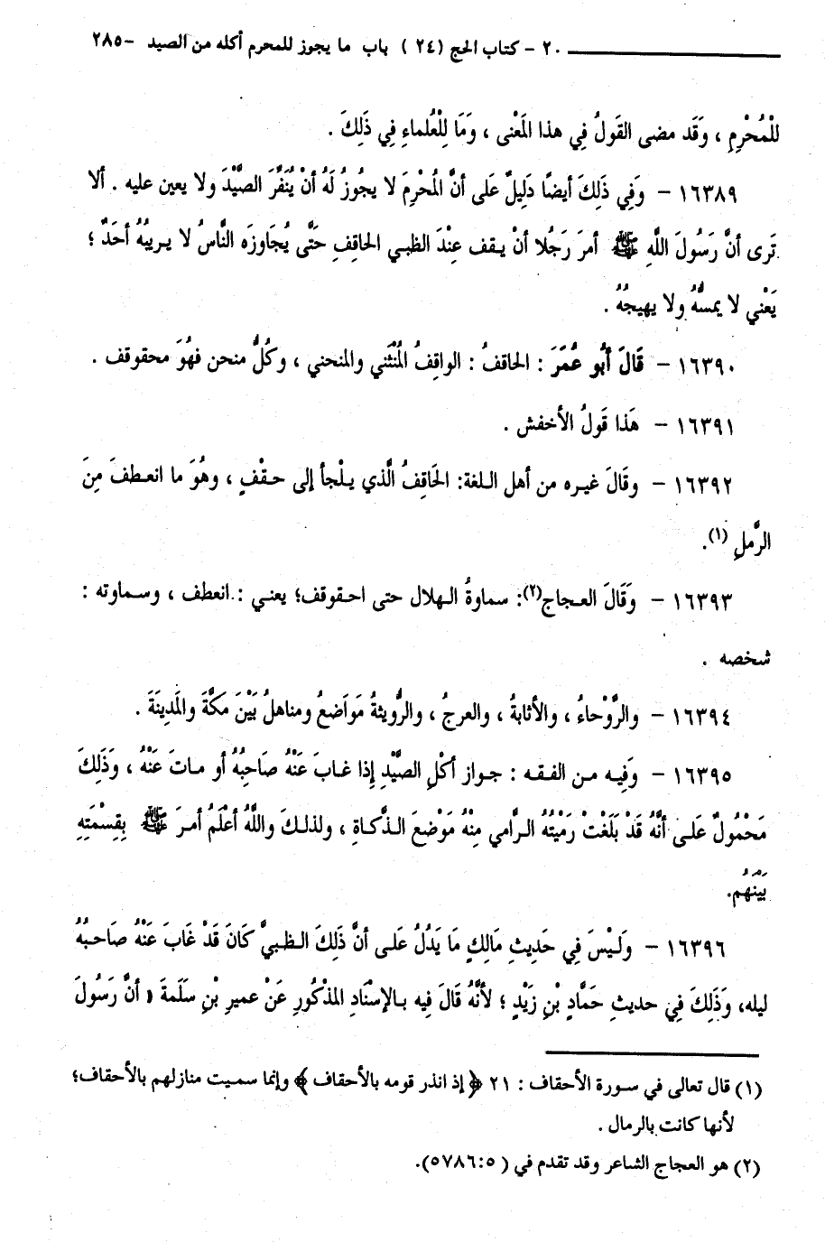 16392 - وَقَالَ غَيْرُهُ مِنْ أَهْلِ اللُّغَةِ: الْحَاقِفُ الَّذِي يَلْجَأُ إِلَى حِقْفٍ، وَهُوَ مَا انْعَطَفَ مِنَ الرَّمْلِ.
