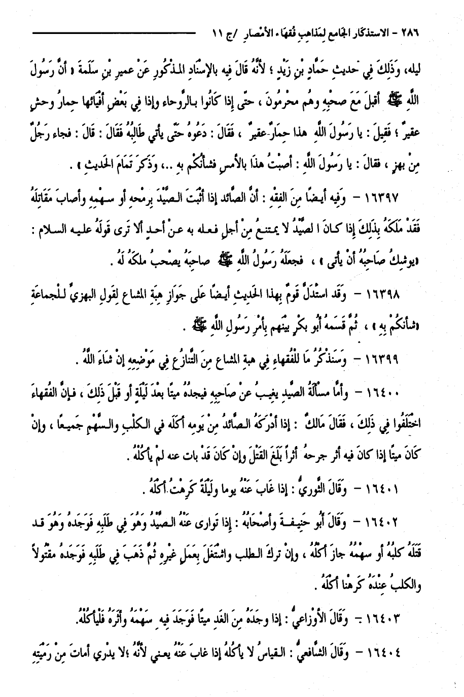 كتاب الاستذكار الجامع لمذاهب فقهاء الأمصار - ت: قلعجي (اسم الجزء: 11)