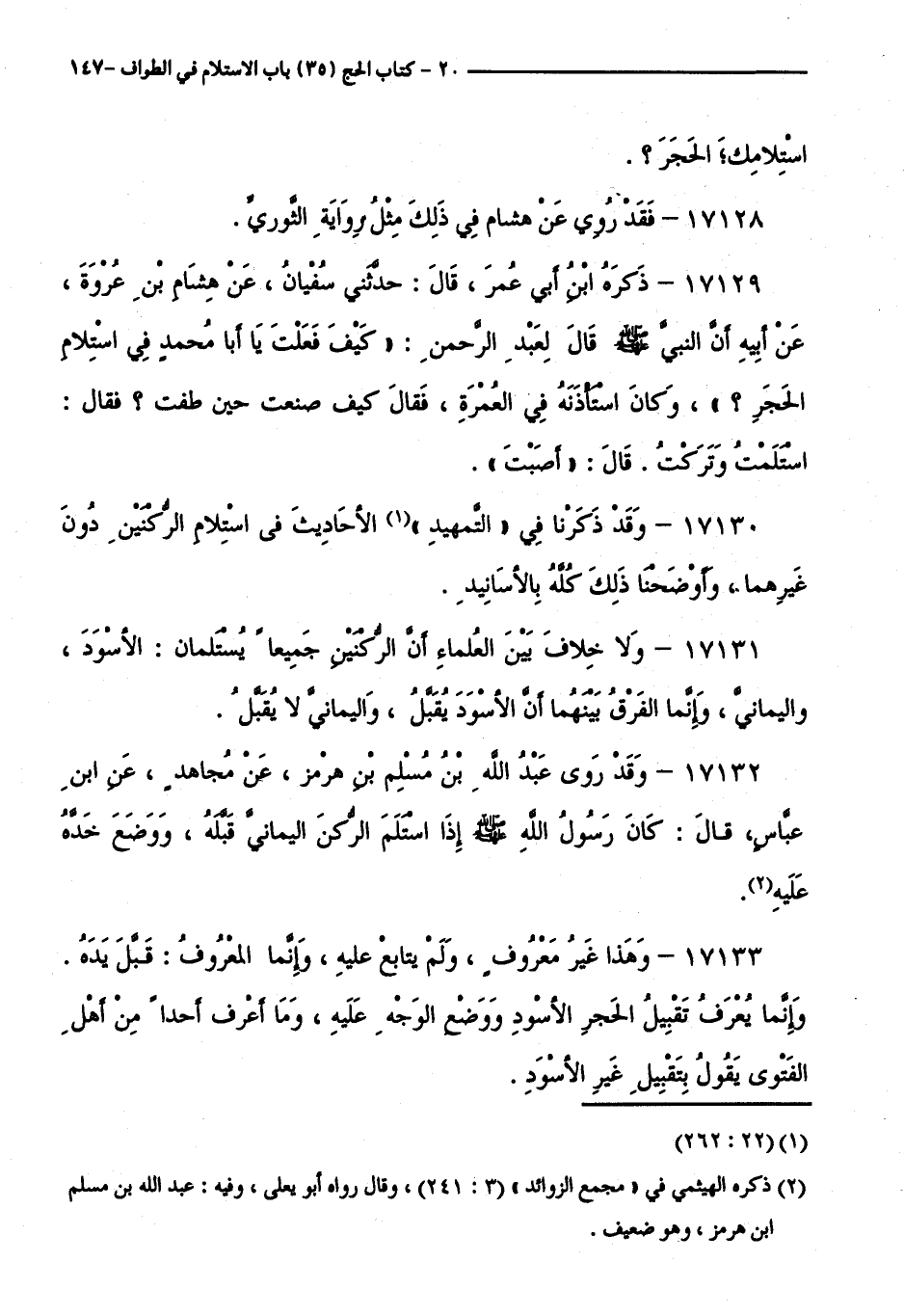 17130 - وَقَدْ ذَكَرْنَا فِي التَّمْهِيدِ الْأَحَادِيثَ فِي اسْتِلَامِ الرُّكْنَيْنِ دُونَ غَيْرِهِمَا وَأَوْضَحْنَا ذَلِكَ كُلَّهُ بِالْأَسَانِيدِ.