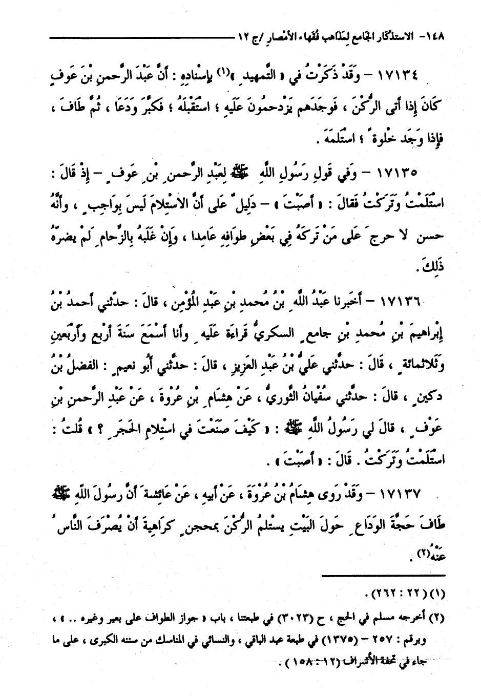 كتاب الاستذكار الجامع لمذاهب فقهاء الأمصار - ت: قلعجي (اسم الجزء: 12)