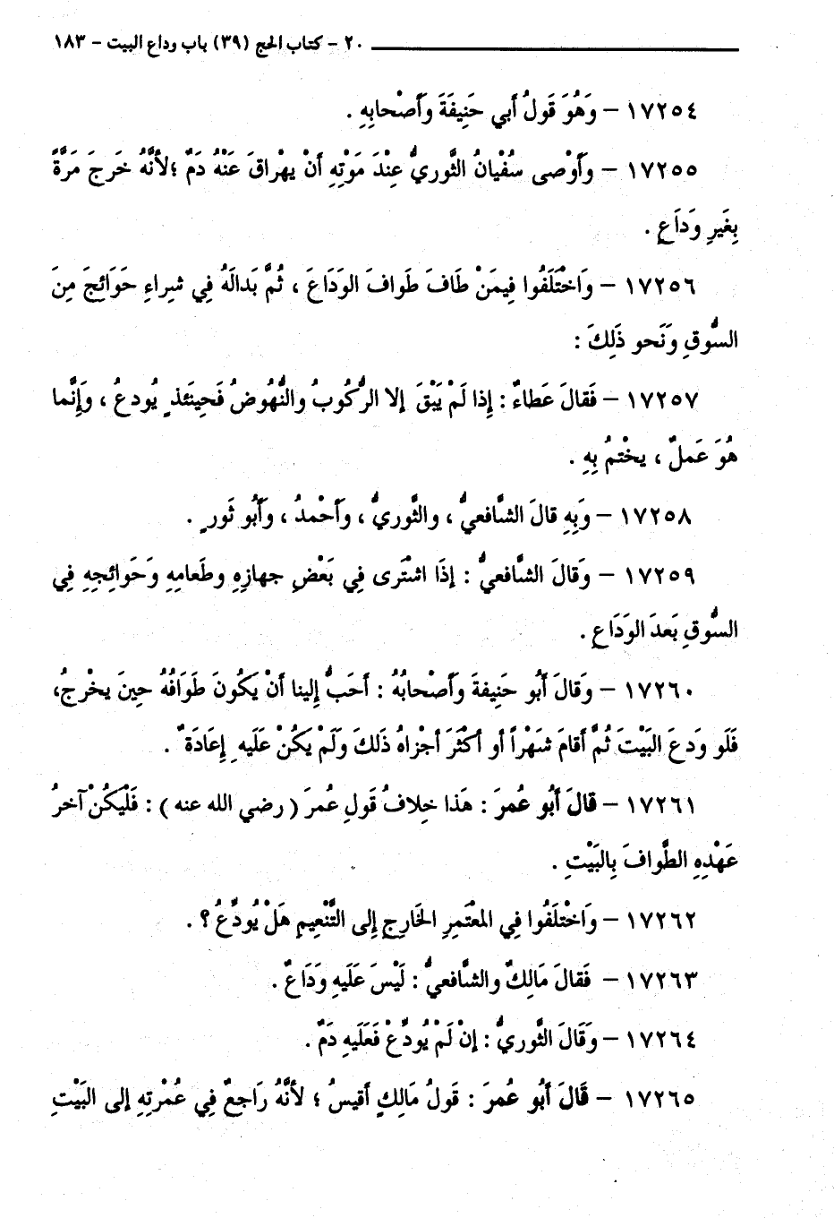 17264 - وَقَالَ الثَّوْرِيُّ: إِنْ لَمْ يُوَدِّعْ فَعَلَيْهِ دَمٌ.