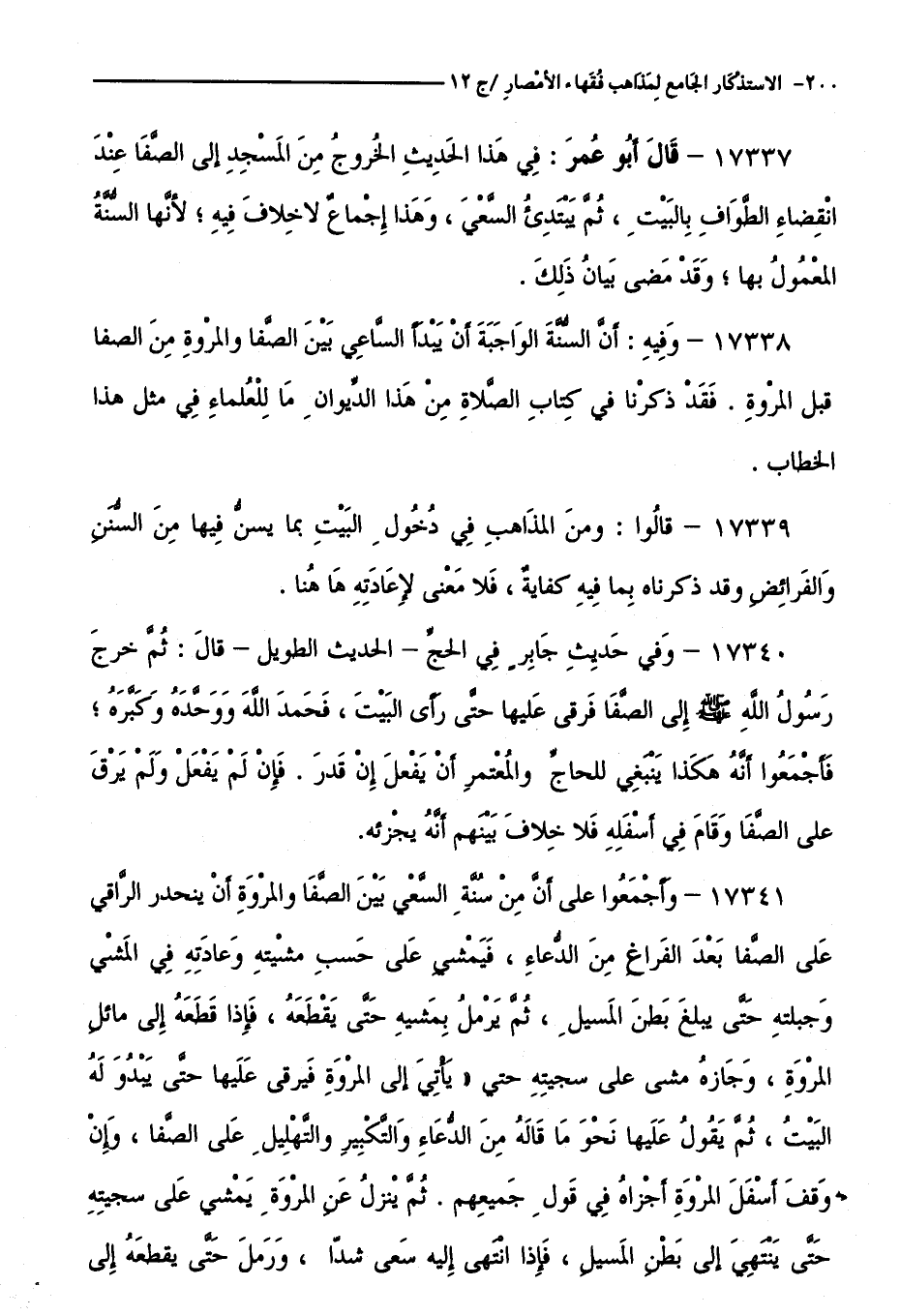 17338 - وَفِيهِ: أَنَّ السُنَّةَ الْوَاجِبَةَ أَنْ يَبْدَأَ السَّاعِي بَيْنَ الصَّفَا وَالْمَرْوَةِ مِنَ الصَّفَا قَبْلَ الْمَرْوَةِ. قَدْ ذَكَرْنَا فِي كِتَابِ الصَّلَاةِ مِنْ هَذَا الدِّيوَانِ مَا لِلْعُلَمَاءِ فِي مِثْلِ هَذَا الْخِطَابِ.