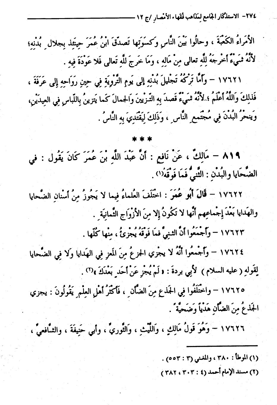 كتاب الاستذكار الجامع لمذاهب فقهاء الأمصار - ت: قلعجي (اسم الجزء: 12)