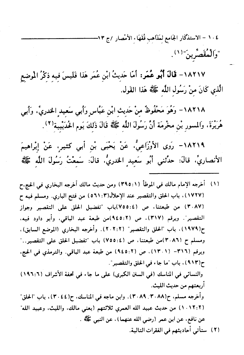 كتاب الاستذكار الجامع لمذاهب فقهاء الأمصار - ت: قلعجي (اسم الجزء: 13)