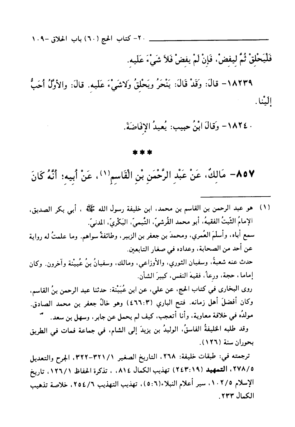 857 - مَالِكٌ، عَنْ عَبْدِ الرَّحْمَنِ بْنِ الْقَاسِمِ، عَنْ أَبِيهِ أَنَّهُ كَانَ
