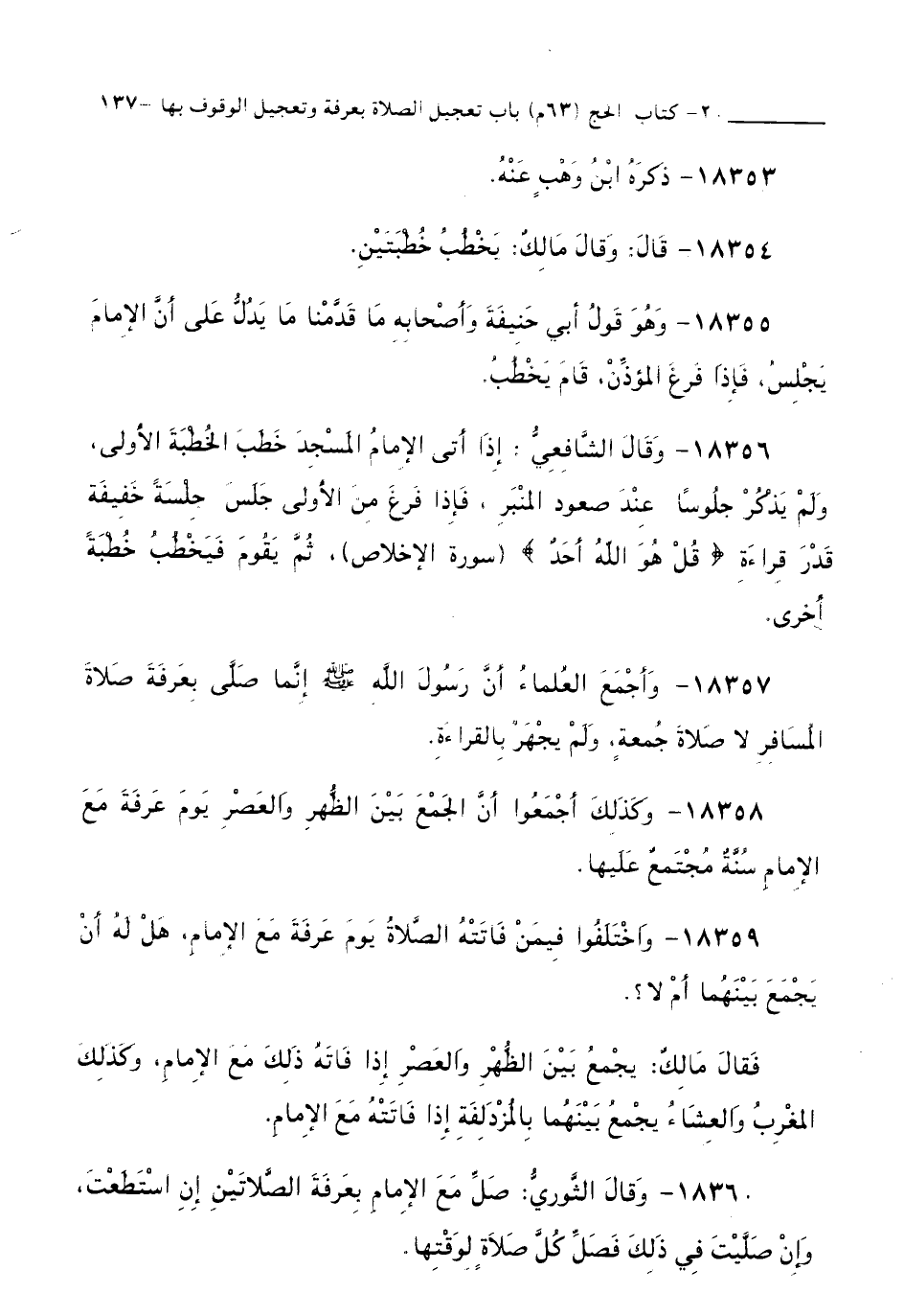18358 - وَكَذَلِكَ أَجْمَعُوا أَنَّ الْجَمْعَ بَيْنَ الظُّهْرِ وَالْعَصْرِ يَوْمَ عَرَفَةَ مَعَ الْإِمَامِ سُنَّةٌ مُجْتَمَعٌ عَلَيْهَا.