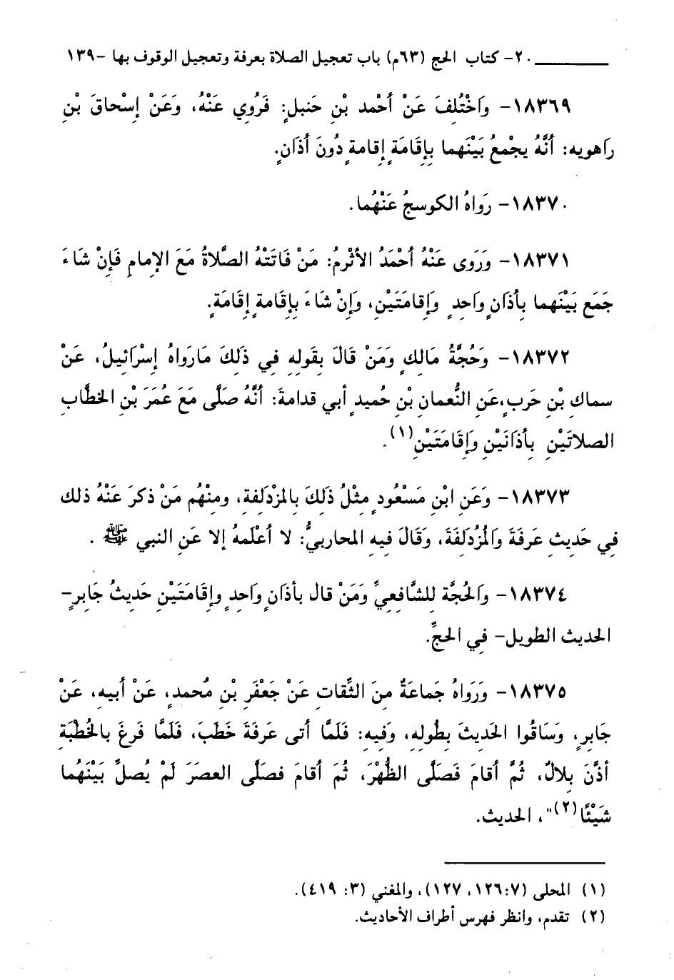 18374 - وَالْحُجَّةُ لِلشَّافِعِيِّ وَمَنْ قَالَ بِأَذَانٍ وَاحِدٍ وَإِقَامَتَيْنِ حَدِيثُ جَابِرٍ - الْحَدِيثُ الطَّوِيلُ - فِي الْحَجِّ.