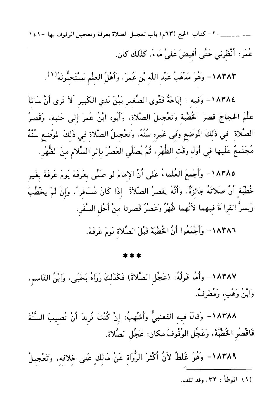18388 - وَقَالَ فِيهِ الْقَعْنَبِيُّ وَأَشْهَبُ: إِنْ كُنْتَ تُرِيدُ أَنْ تُصِيبَ السُّنَّةَ فَاقْصُرِ الْخُطْبَةَ، وَعَجِّلِ الْوُقُوفَ مَكَانَ: عَجِّلِ الصَّلَاةَ.
