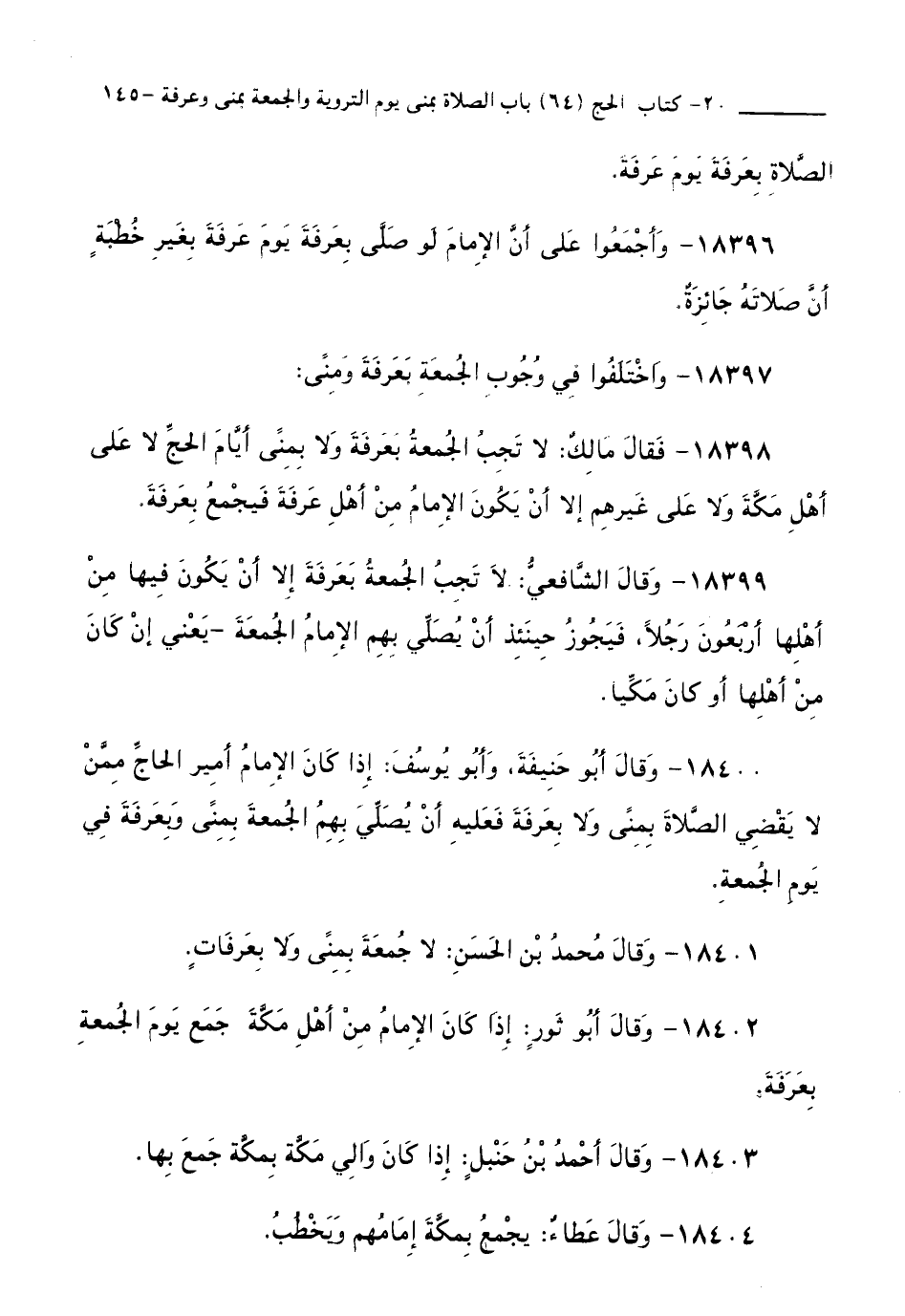 18397 - وَاخْتَلَفُوا فِي وُجُوبِ الْجُمُعَةِ بِعَرَفَةَ وَمِنًى.