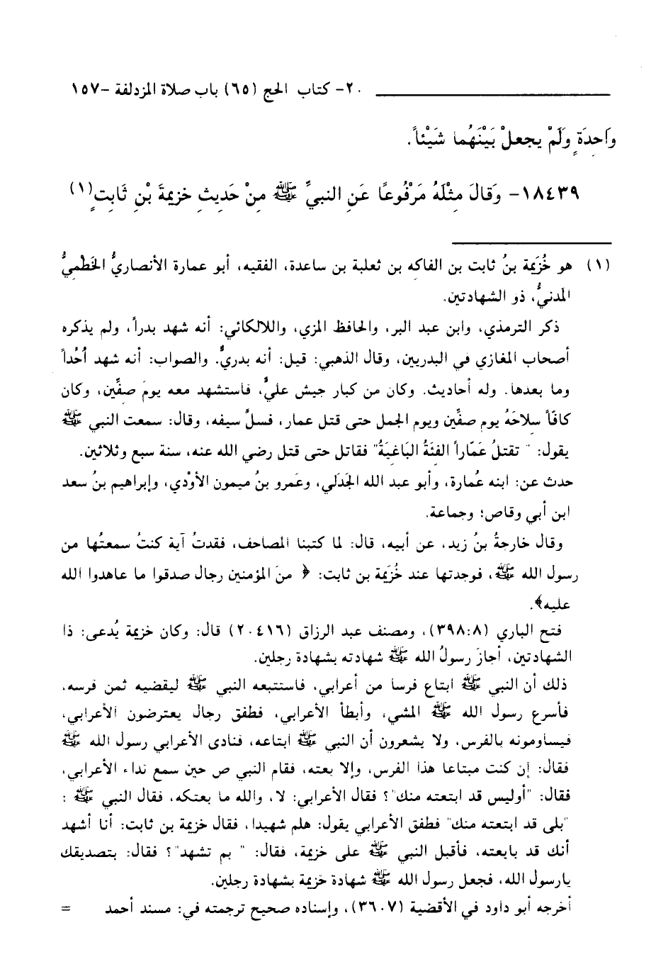18439 - وَقَالَ مِثْلَهُ مَرْفُوعًا عَنِ النَّبِيِّ - صَلَّى اللَّهُ عَلَيْهِ وَسَلَّمَ - مِنْ حَدِيثِ خُزَيْمَةَ بْنِ ثَابِتٍ