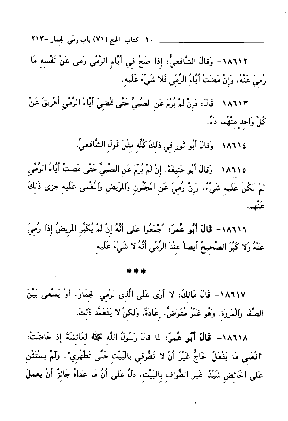 18615 - وَقَالَ أَبُو حَنِيفَةَ: إِنْ لَمْ يُرْمَ عَنِ الصَّبِيِّ حَتَّى مَضَتْ أَيَّامُ الرَّمْيِ لَمْ يَكُنْ عَلَيْهِ شَيْءٌ، وَإِنْ رُمِيَ عَنِ الْمَجْنُونِ وَالْمَرِيضِ وَالْمُغْمَى عَلَيْهِ جَزَى ذَلِكَ عَنْهُمْ.