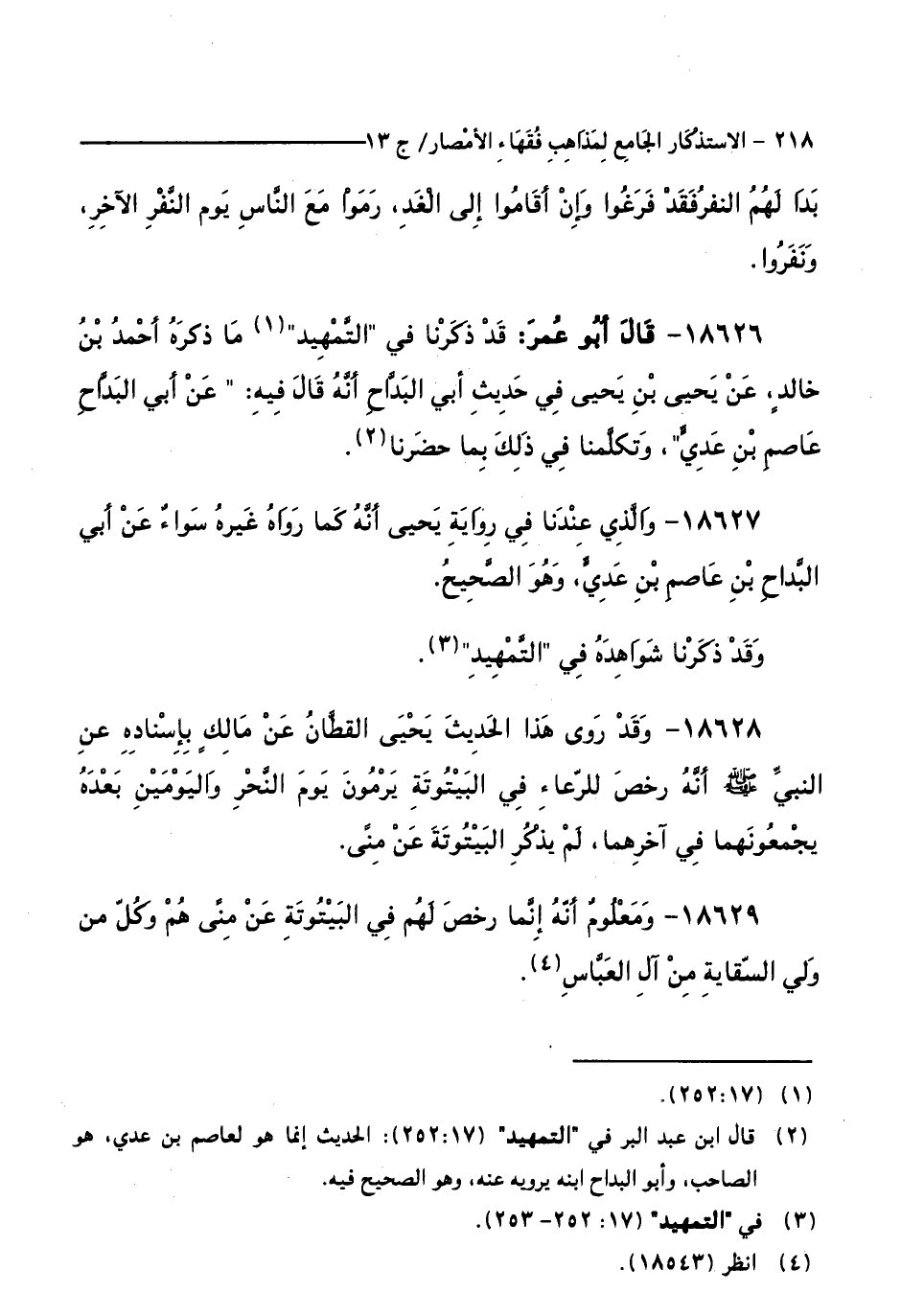 18629 - وَمَعْلُومٌ أَنَّهُ إِنَّمَا رَخَّصَ لَهُمْ فِي الْبَيْتُوتَةِ عَنْ مِنًى هُمْ وَكُلُّ مَنْ وَلِيَ السِّقَايَةَ مِنْ آلِ الْعَبَّاسِ.