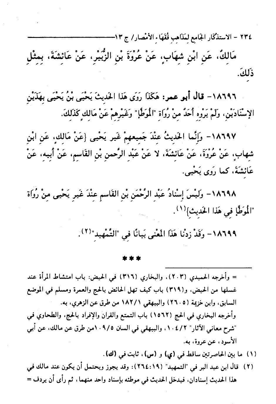 18698 - وَلَيْسَ إِسْنَادُ عَبْدِ الرَّحْمَنِ بْنِ الْقَاسِمِ عِنْدَ غَيْرِ يَحْيَى مِنْ رُوَاةِ " الْمُوَطَّأِ " فِي هَذَا الْحَدِيثِ.