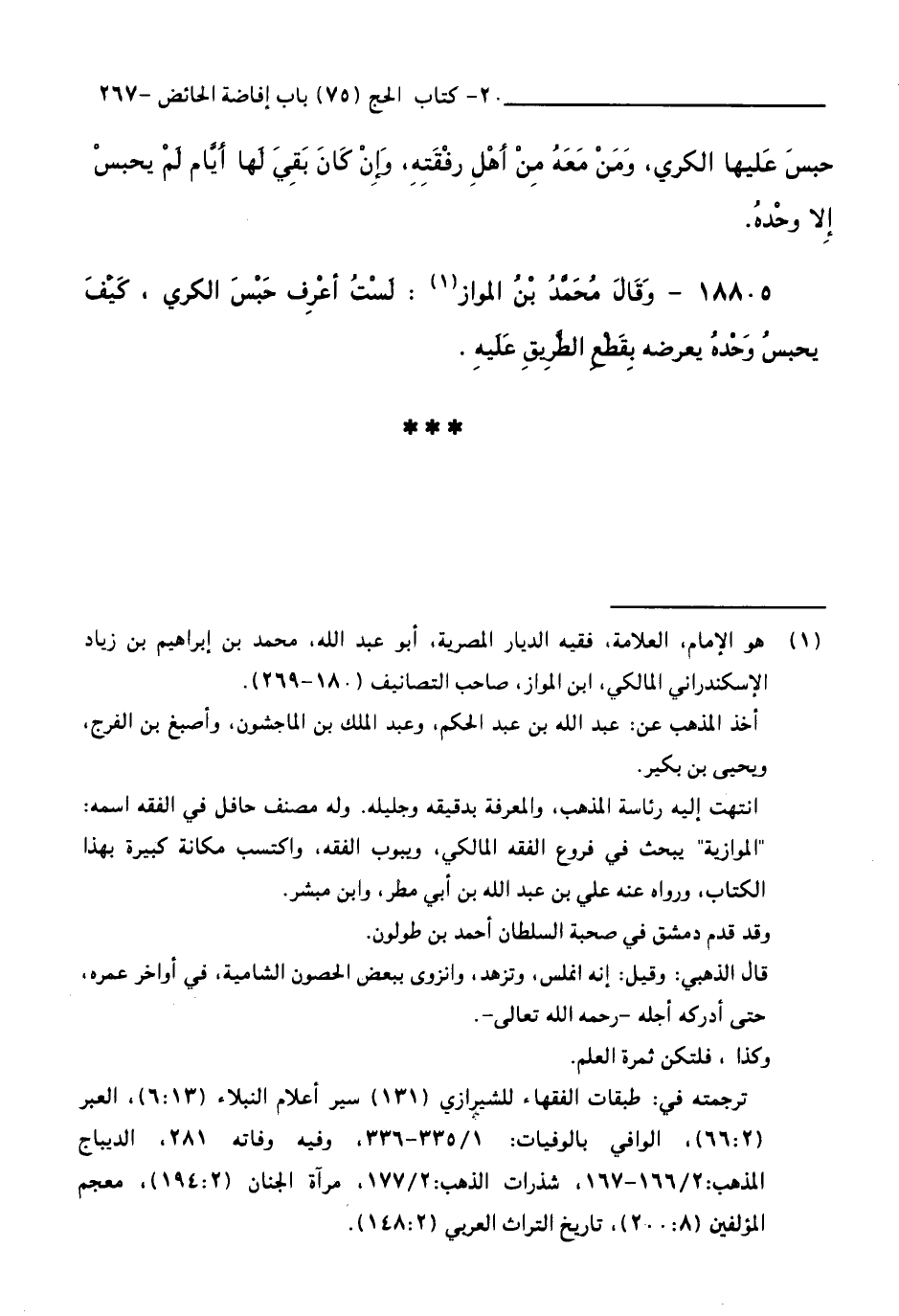 18805 - وَقَالَ مُحَمَّدُ بْنُ الْمَوَّازِ: لَسْتُ أَعْرِفُ حَبْسَ الْكَرِيِّ، كَيْفَ يُحْبَسُ وَحْدَهُ يُعَرِّضُهُ بِقَطْعِ الطَّرِيقِ عَلَيْهِ.