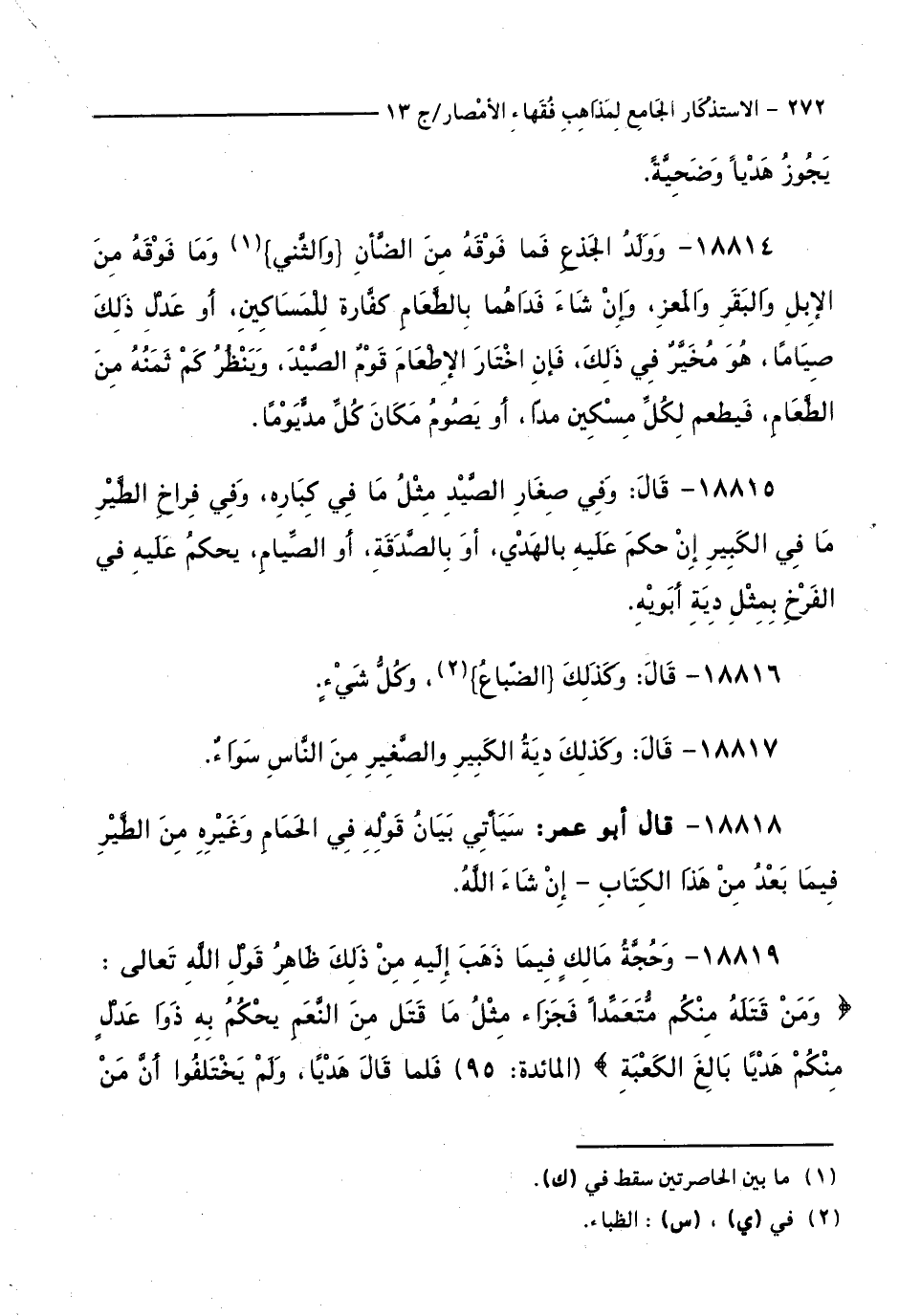 كتاب الاستذكار الجامع لمذاهب فقهاء الأمصار - ت: قلعجي (اسم الجزء: 13)