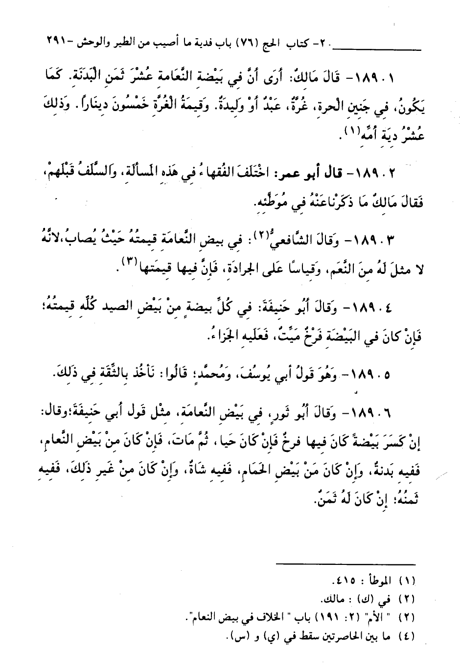 18901 - قَالَ مَالِكٌ: أَرَى أَنَّ فِي بَيْضَةِ النَّعَامَةِ عُشْرَ ثَمَنِ الْبَدَنَةِ، كَمَا يَكُونُ فِي جَنِينِ الْحُرَّةِ غُرَّةُ عَبْدٍ أَوْ وَلِيدَةٍ. وَقِيمَةُ الْغُرَّةِ خَمْسُونَ دِينَارًا. وَذَلِكَ عُشْرُ دِيَةِ أُمِّهِ.