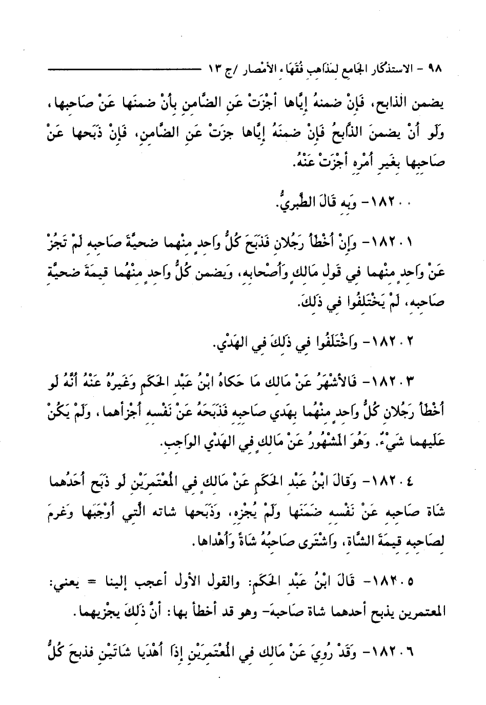 كتاب الاستذكار الجامع لمذاهب فقهاء الأمصار - ت: قلعجي (اسم الجزء: 13)